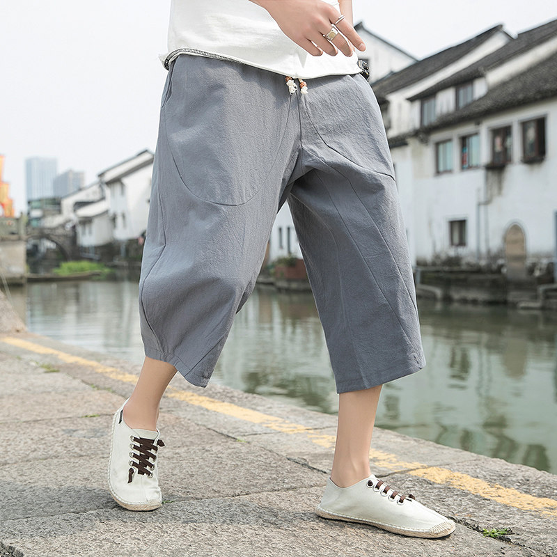 亚麻裤男胖子短裤七分裤夏季薄款棉麻中裤子直筒大码宽松7分裤男