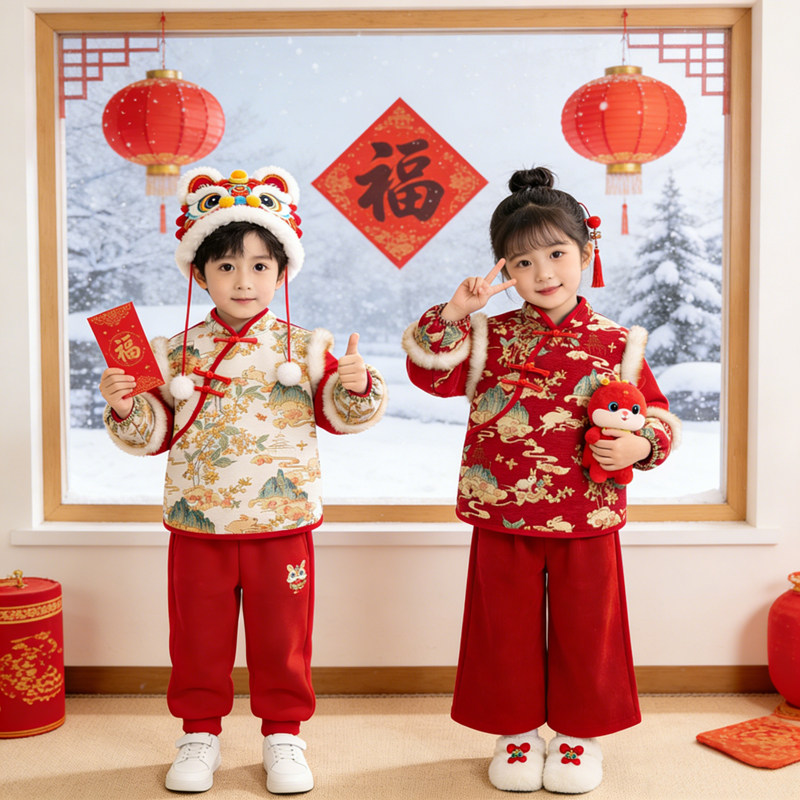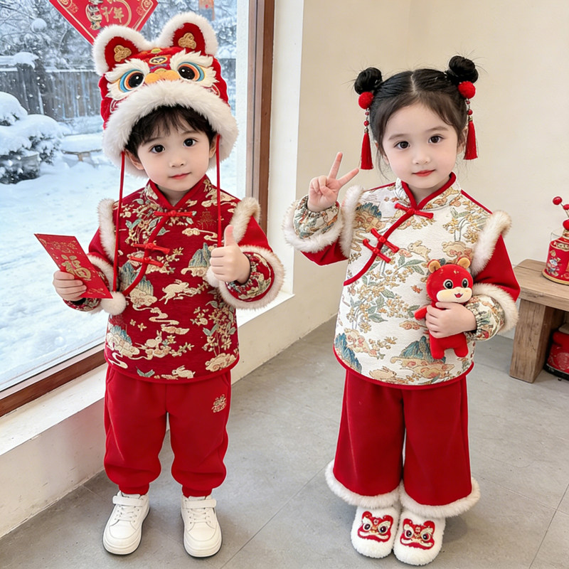 过年国风罩衣新年儿童秋冬洋气外穿拜年服宝宝围兜反穿衣防脏护衣