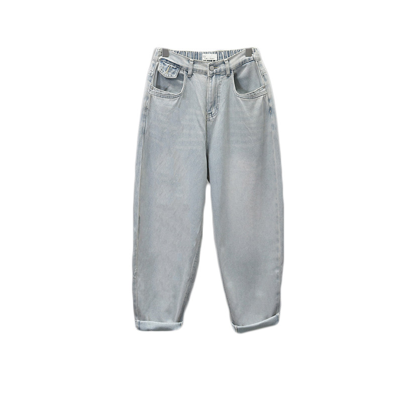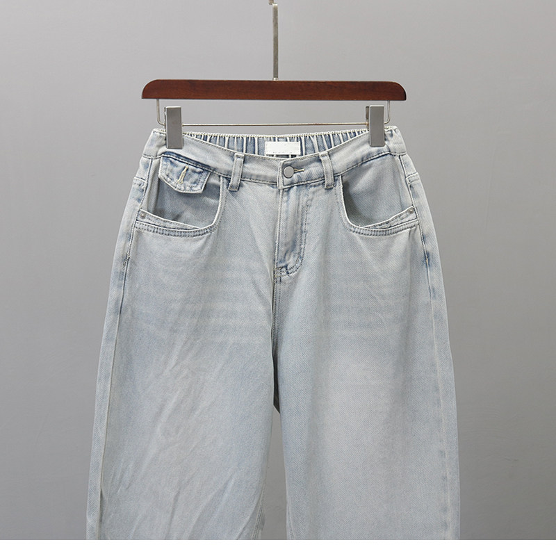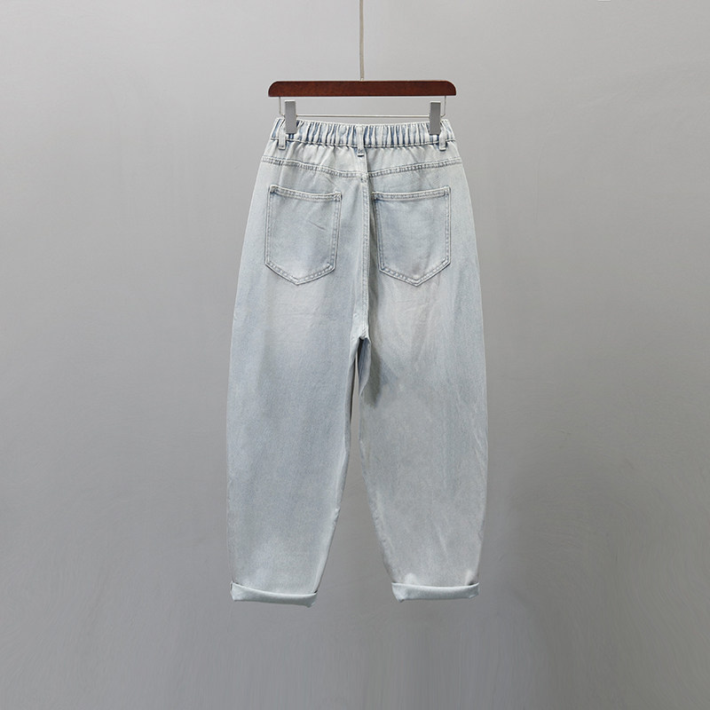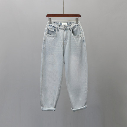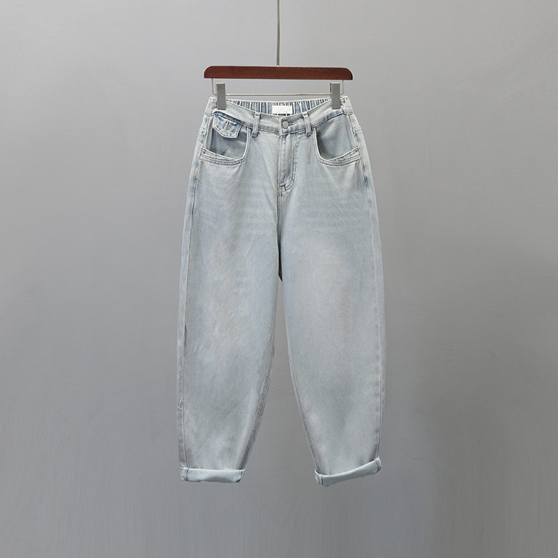 浅蓝色后松紧腰老爹牛仔裤女2025春季新款宽松显瘦休闲胖MM哈伦裤
