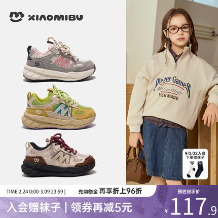 小米步女童运动鞋春秋网面透气软底儿童跑步鞋休闲老爹鞋中大童