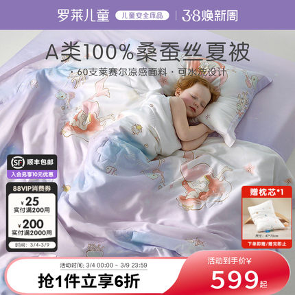 【新品】罗莱儿童桑蚕丝被天丝凉感空调被幼儿园被子可水洗夏凉被