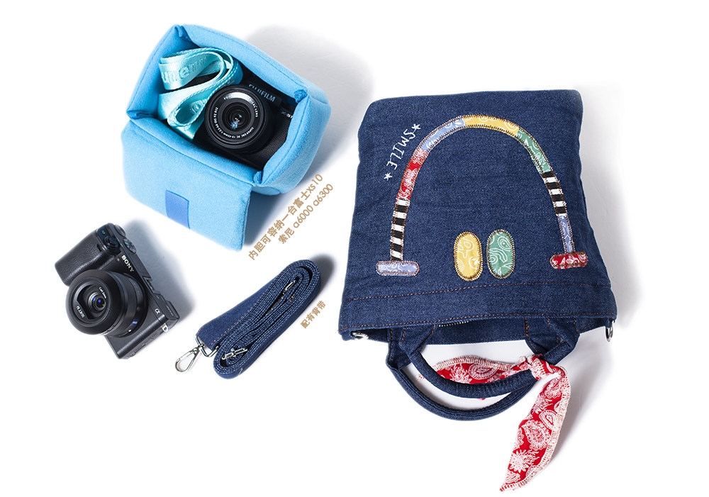 Shounenn腰果花拼接单肩牛仔斜挎包富士微单xs10内胆摄影手提帆布