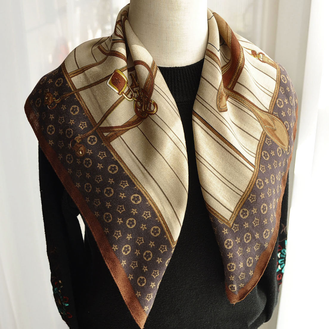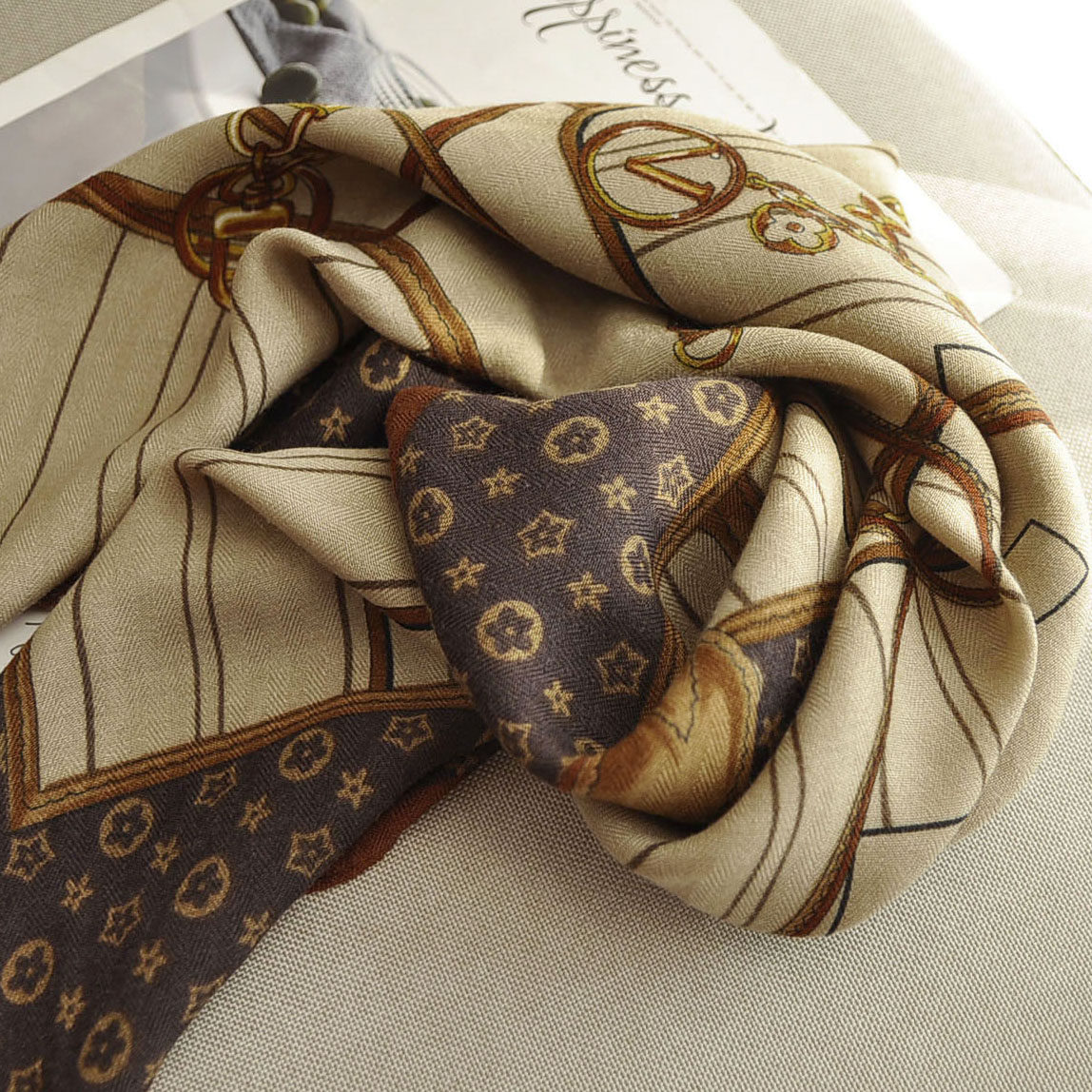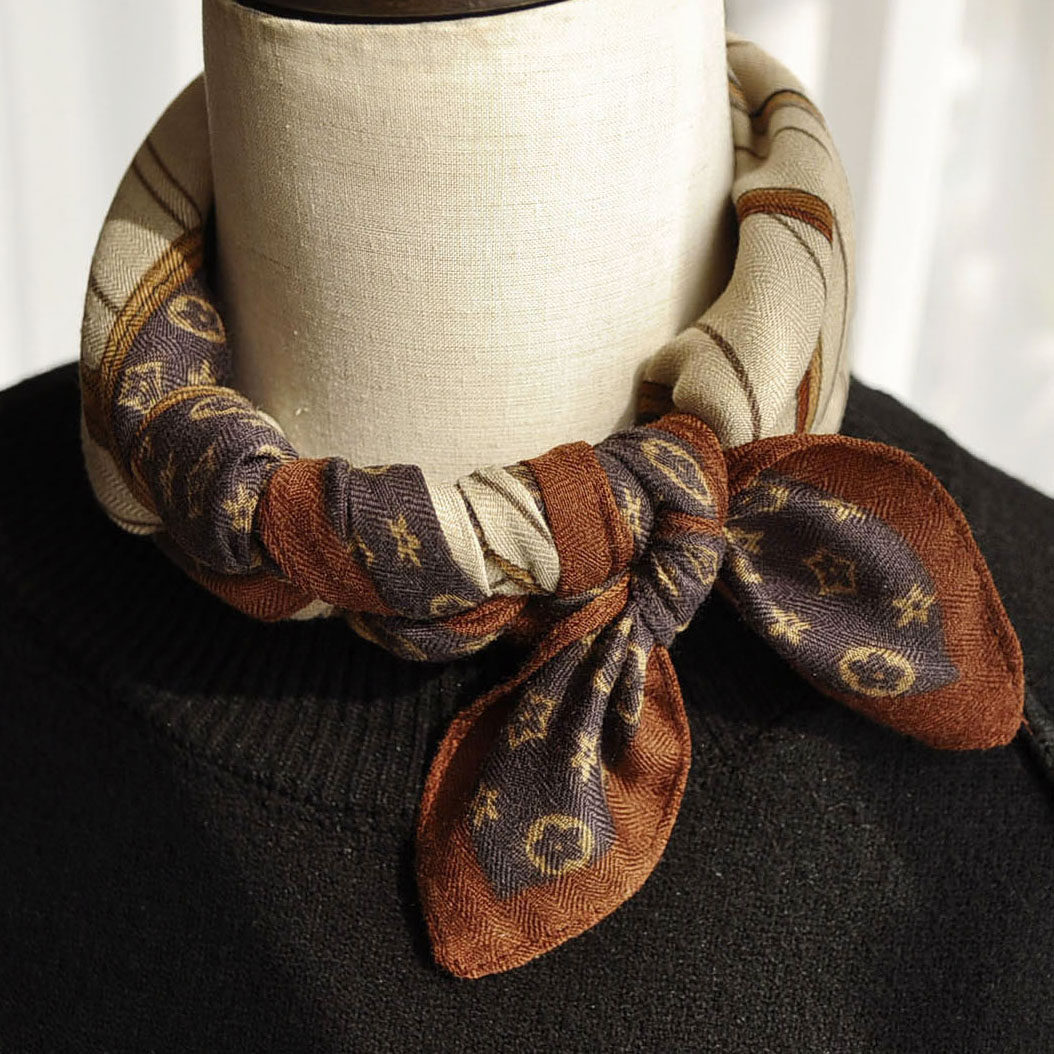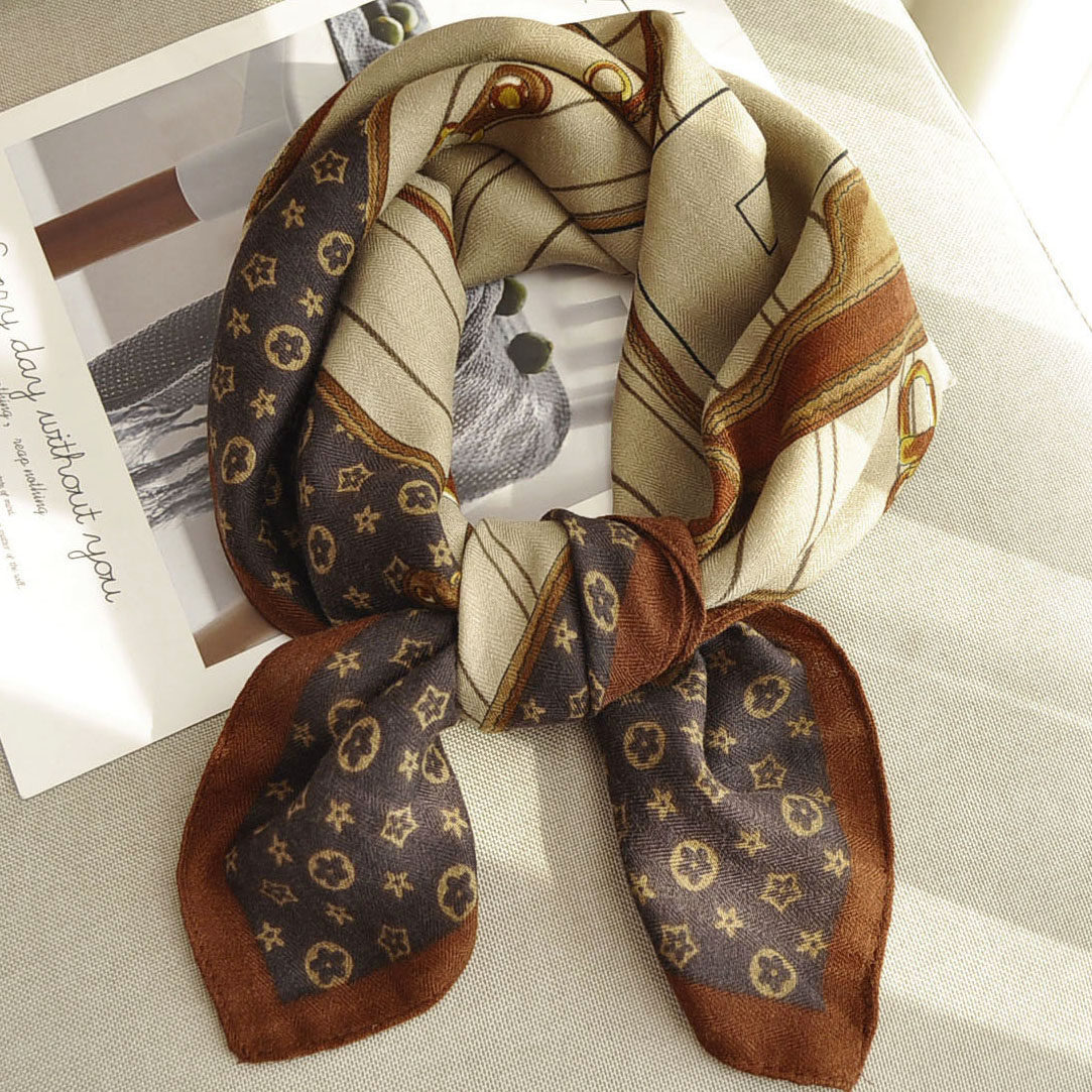韩版几何图案小方巾丝巾男女士冬季百搭装饰保暖围巾棕色护颈领巾