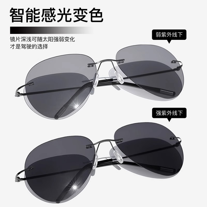 芬驰无框超轻墨镜男飞行员偏光太阳镜防紫外线开车驾驶变色眼镜女