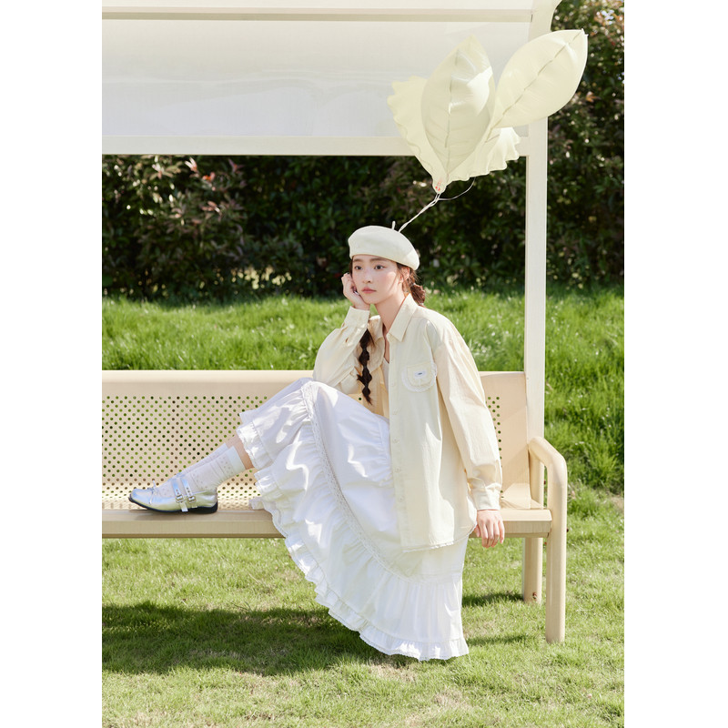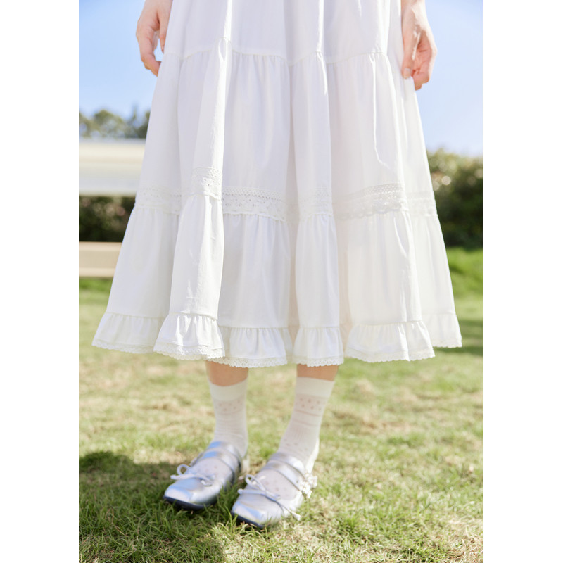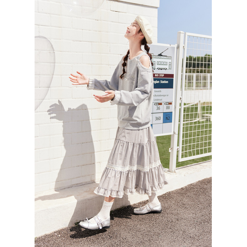 紫涵咖格蛋糕半身裙女秋季新款甜美蕾丝花边拼接松紧高腰a字长裙