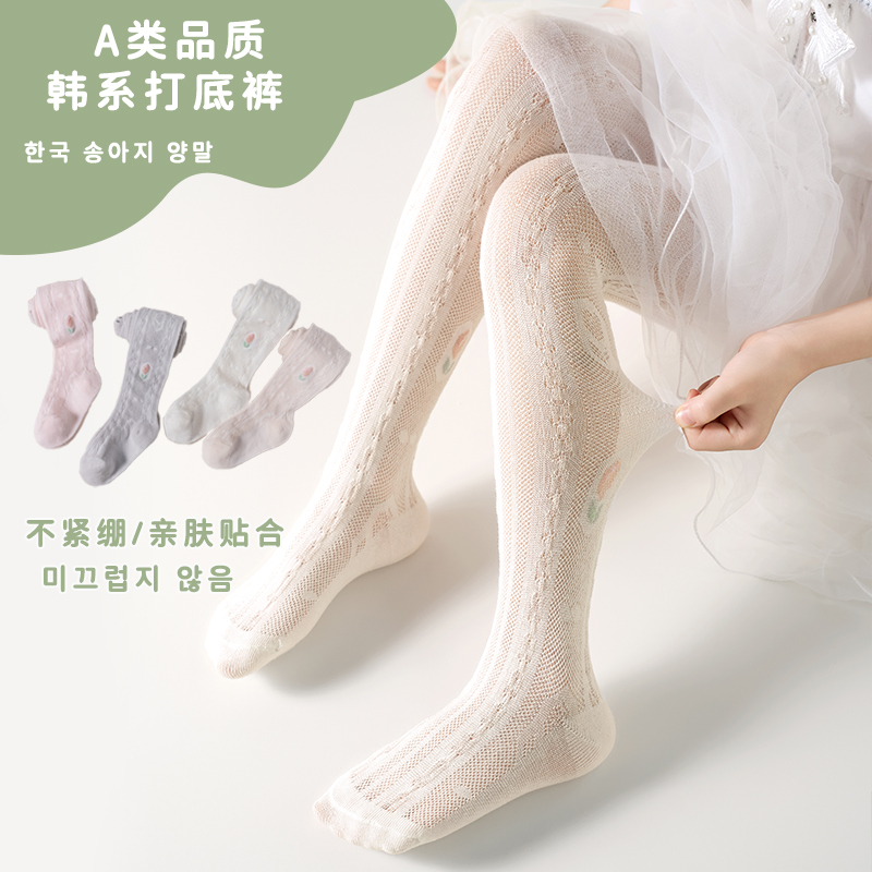 女童打底裤配裙子春夏季薄款网眼纯棉a类外穿白色儿童女宝连裤袜