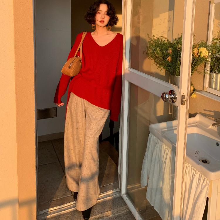 酒午自制【赤陶土】港风复古2025春季新款高腰格纹西装休闲裤