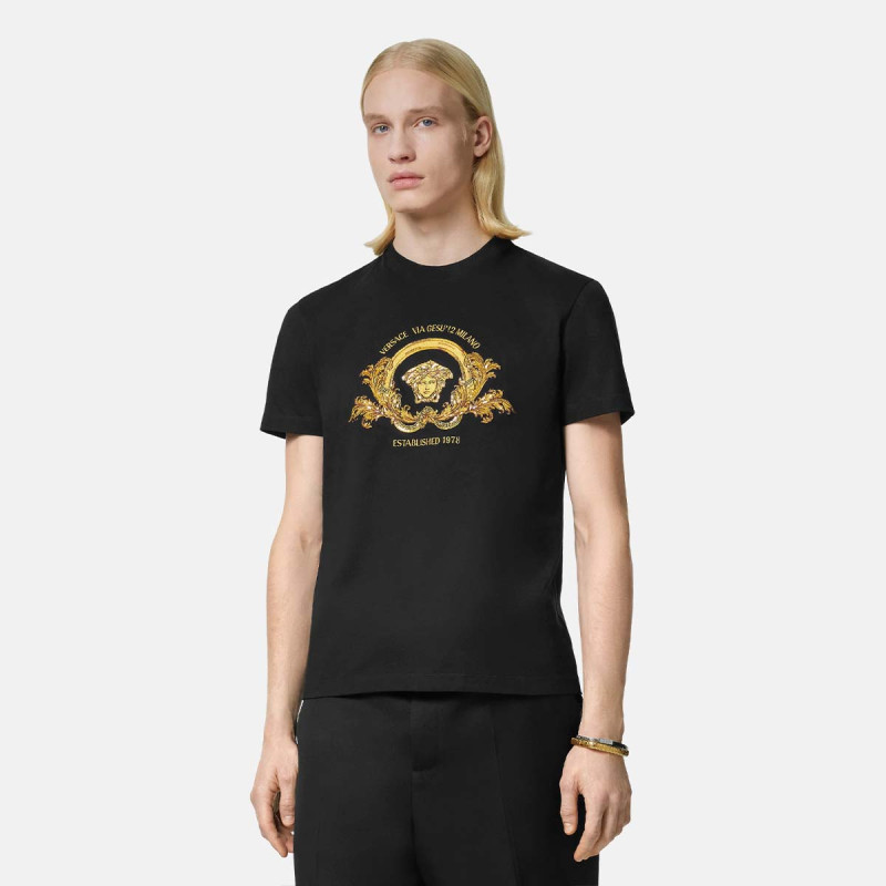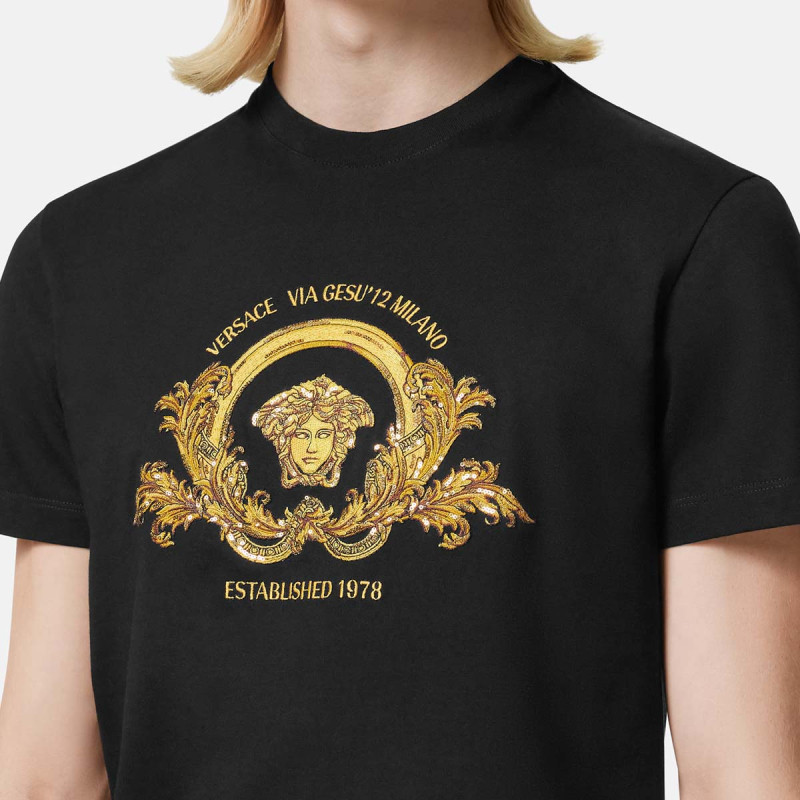【季末优惠】VERSACE/范思哲 男士刺绣Coupe Blason T恤