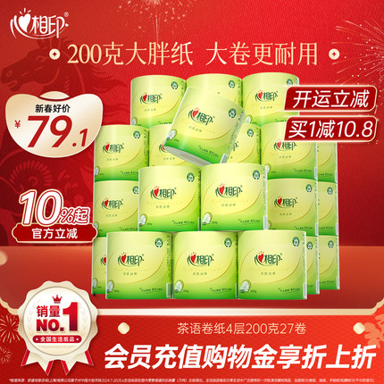 【春节发货】心相印卷纸茶语卫生纸家用卷筒纸200克27卷大胖纸
