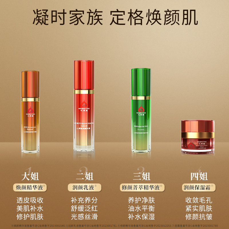 心清堂升级四姐妹套装乳液精华霜