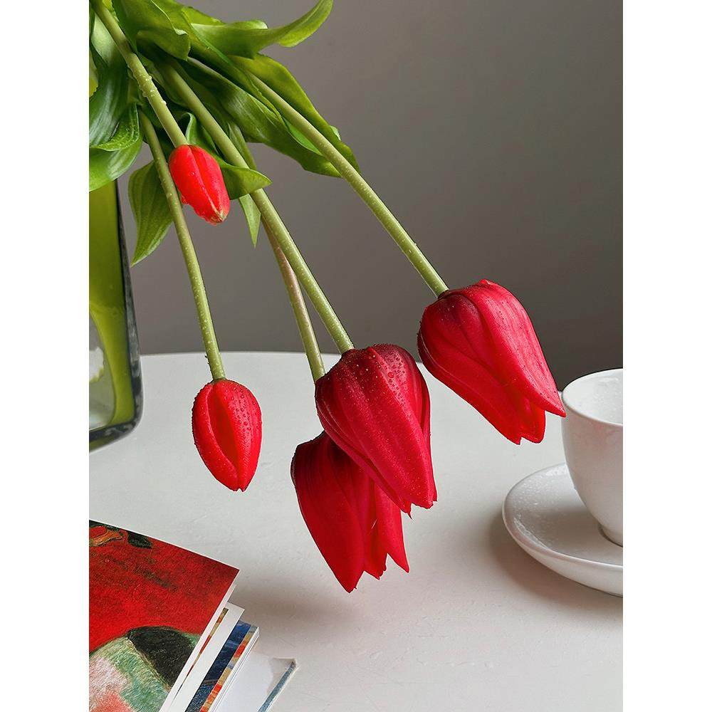 手感保湿郁金香仿真花摆件ins假花装饰摆设粉色花束客厅桌面插花