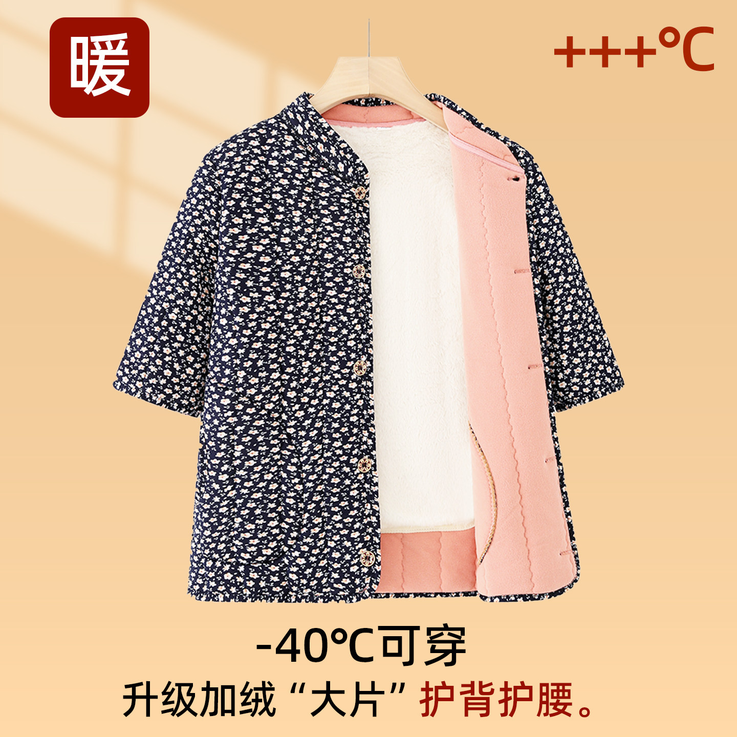 棉衣女中长款加绒加厚保暖棉袄妈妈装中老年棉服小袄碎花中袖贴片