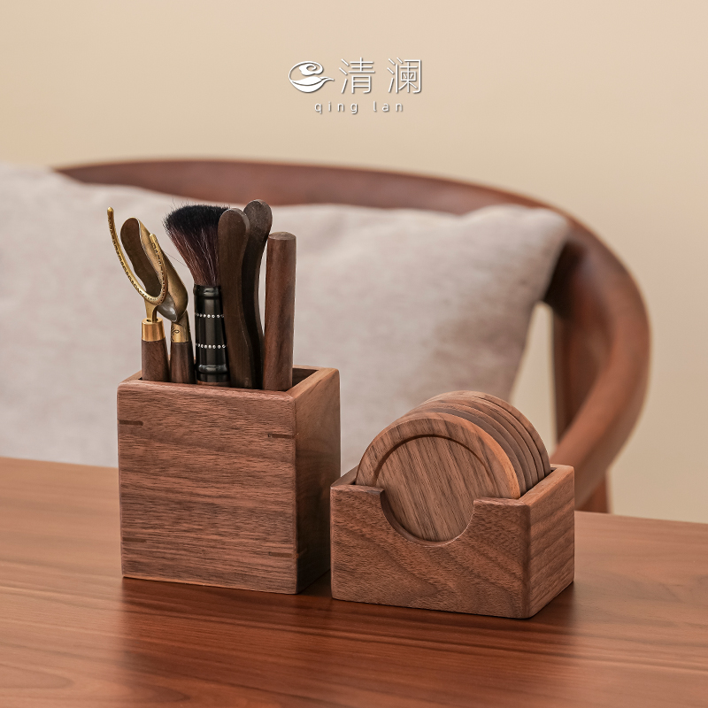 清澜胡桃木茶道六君子套装高档功夫茶具配件新中式实木泡茶工具