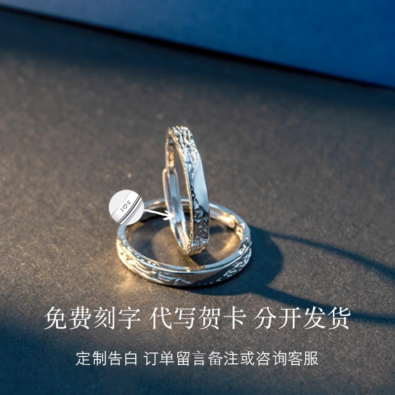 S999足银情侣戒指女一对小众纯银刻字对戒七夕情人节礼物送女男友