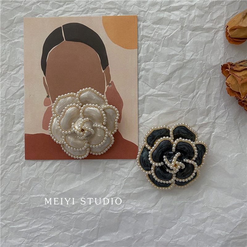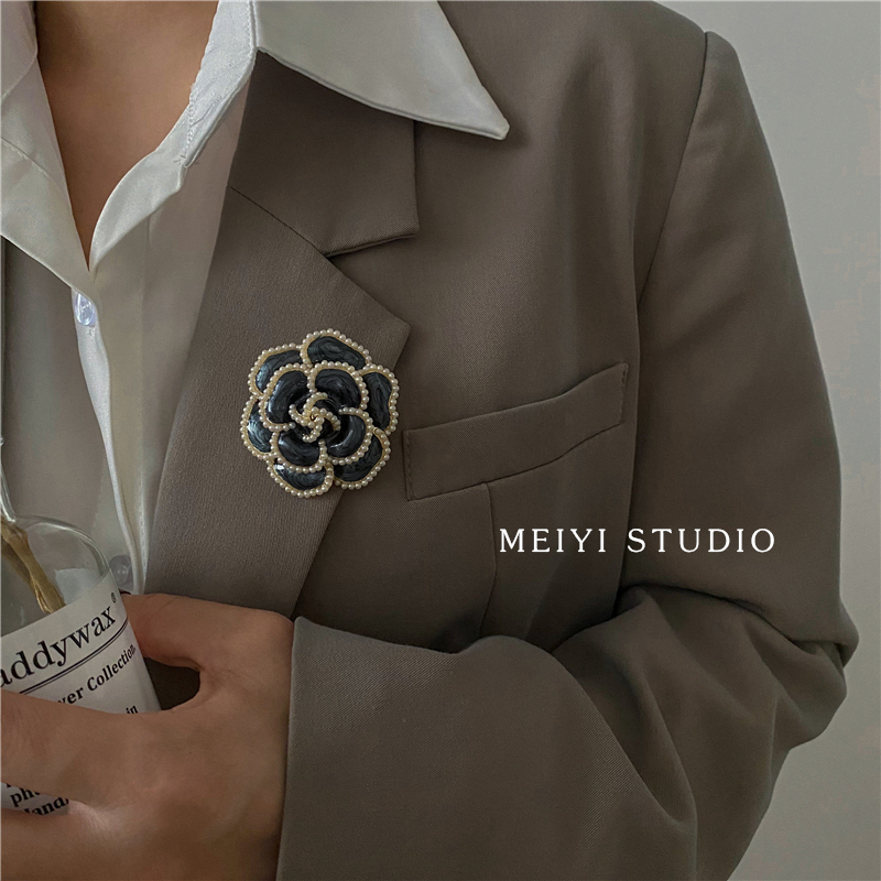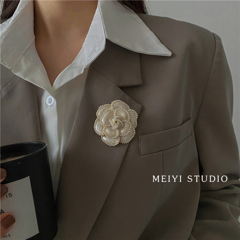 奢华高级感珍珠复古小众山茶花胸针女高档西装衣服配饰小香风胸花