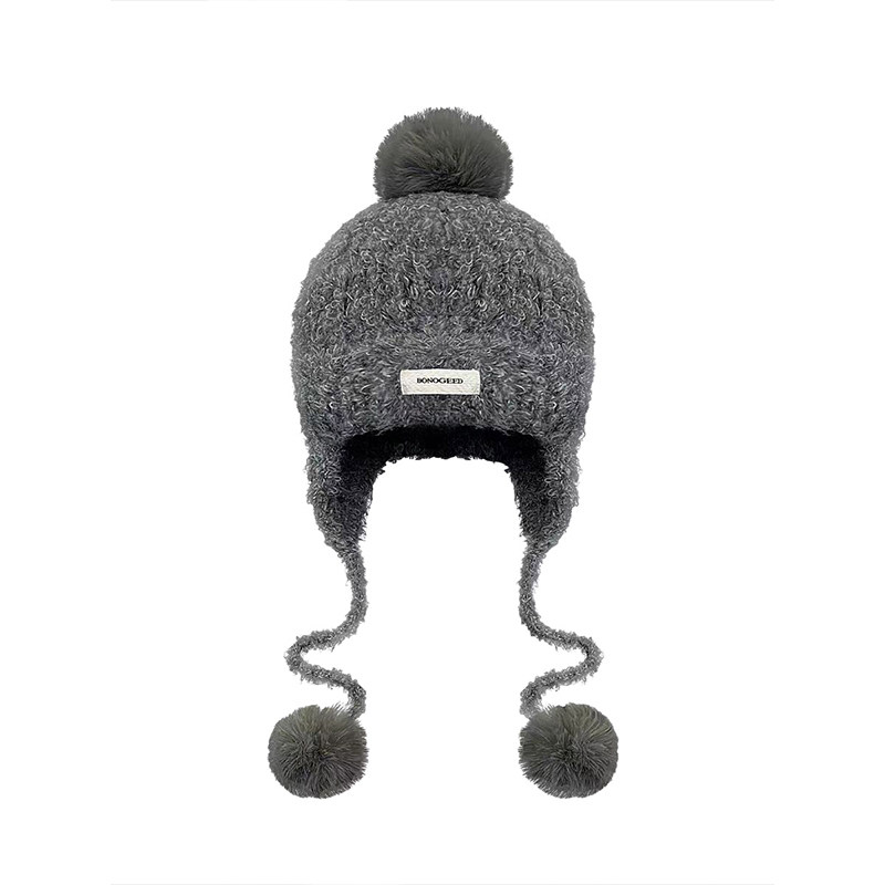 2026新款韩版针织毛球雷锋帽女秋冬季保暖防寒百搭系带毛线护耳帽