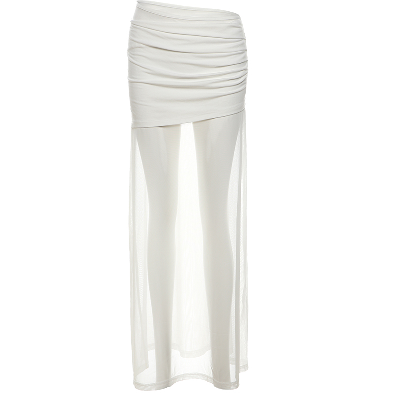 KLIOU 仙气浪漫层次感网纱拼接高腰半身裙女褶皱显瘦遮肉包臀长裙