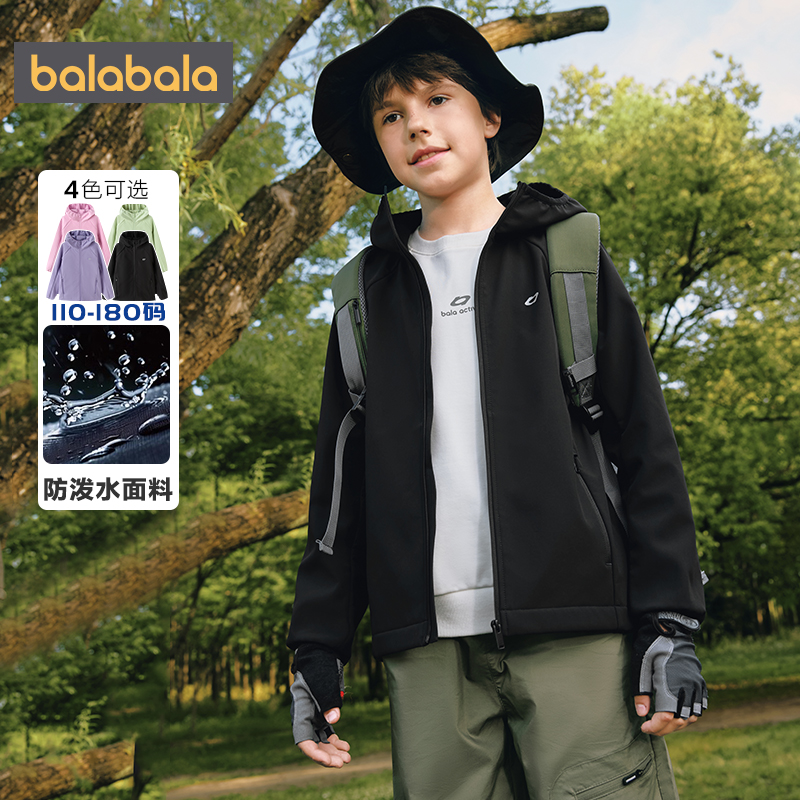 巴拉巴拉儿童外套男童女童户外软壳衣春秋款童装中大童运动风衣厚