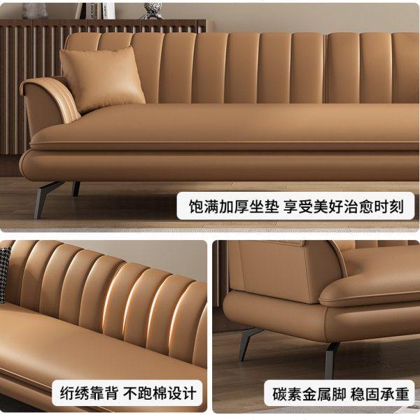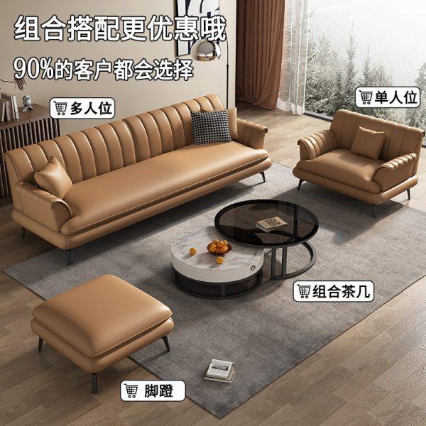 皮沙发客厅小户型2025新款办公室现代简约复古棕色三人位直排沙发