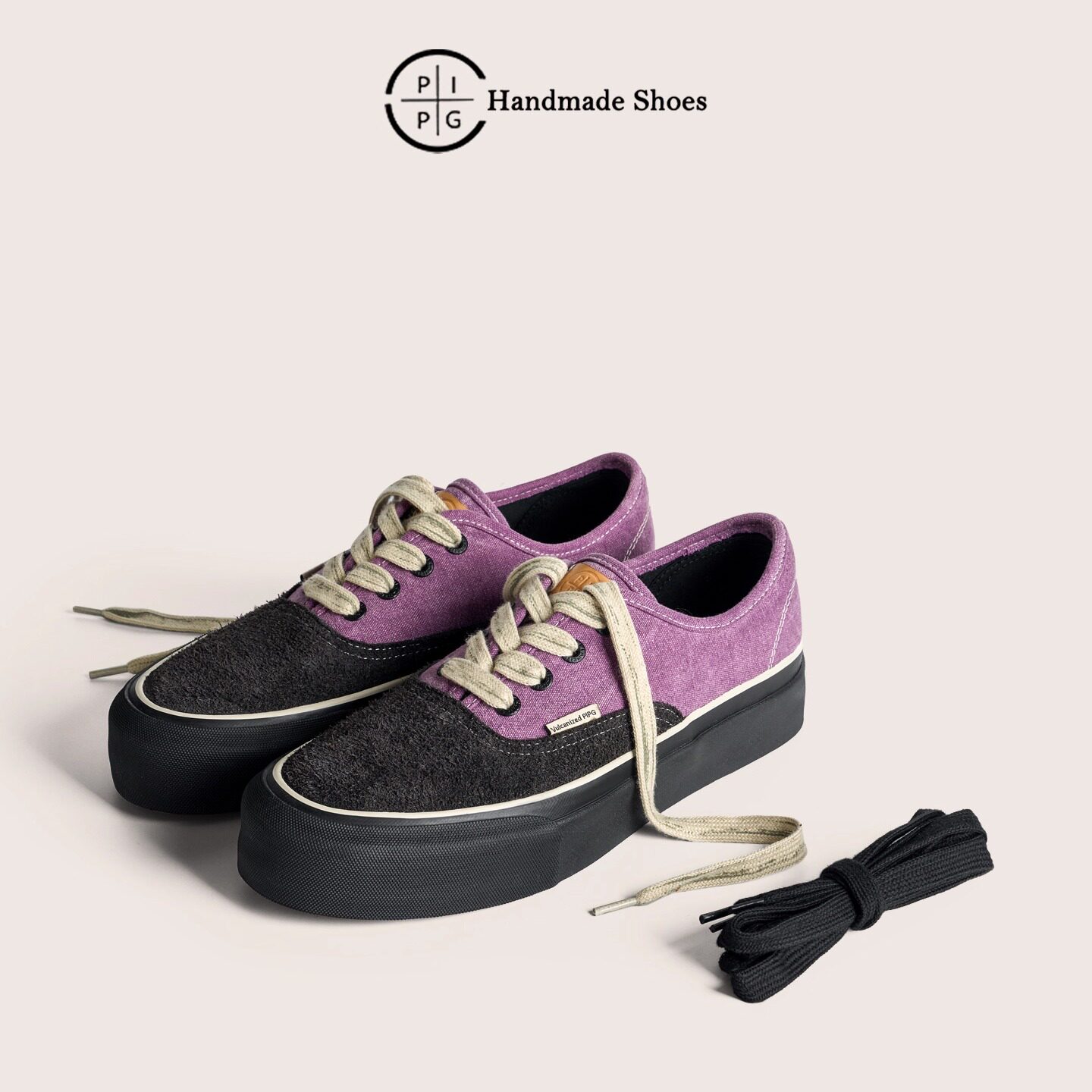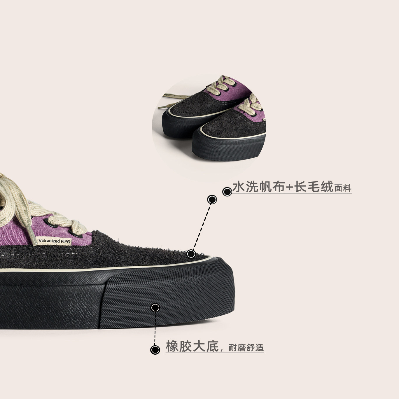 PIPG复古反毛皮帆布鞋男士 手工厚底硫化鞋日系透气百搭休闲板鞋