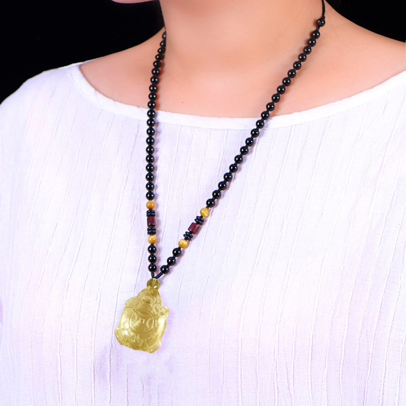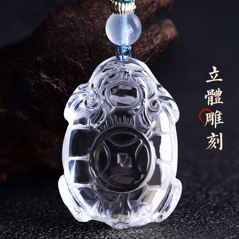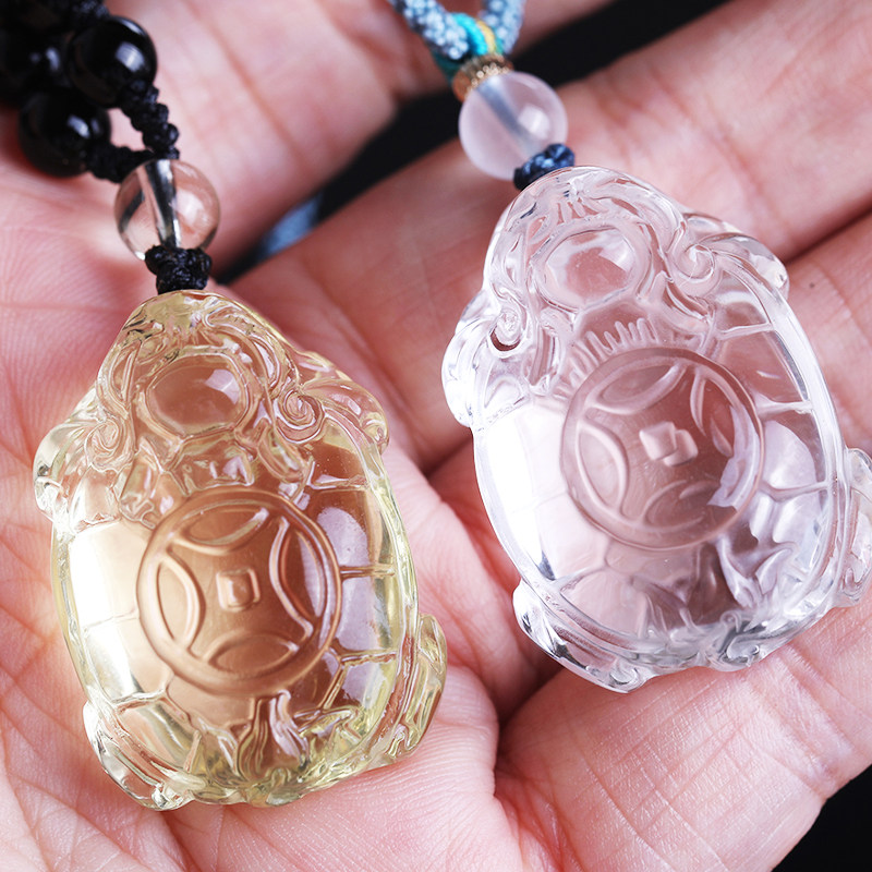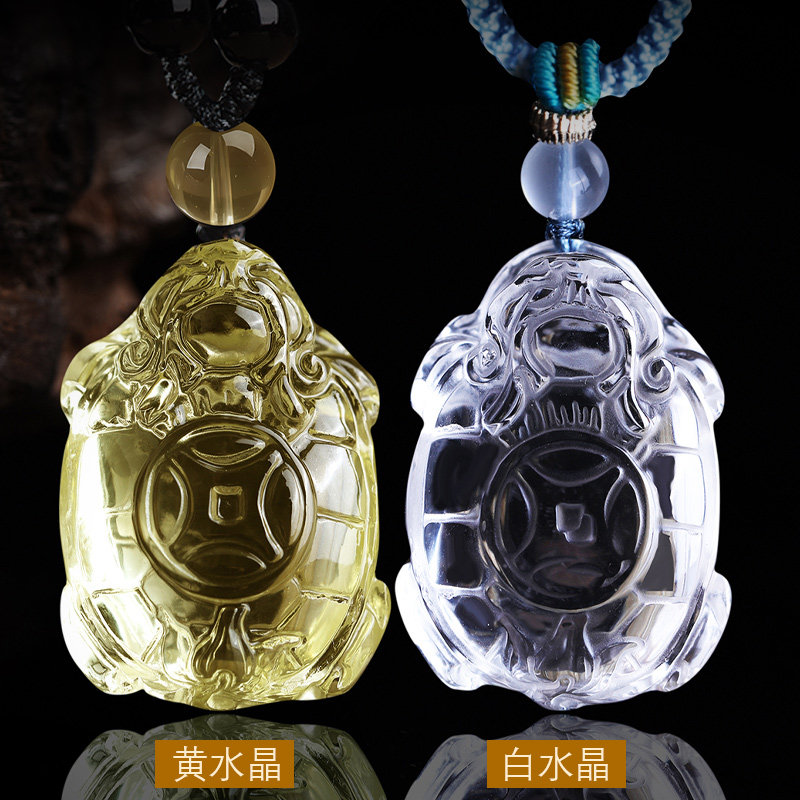 天然黄白水晶龙龟吊坠玄武瑞兽铜钱龙头龟挂件富甲一方金钱龟项链