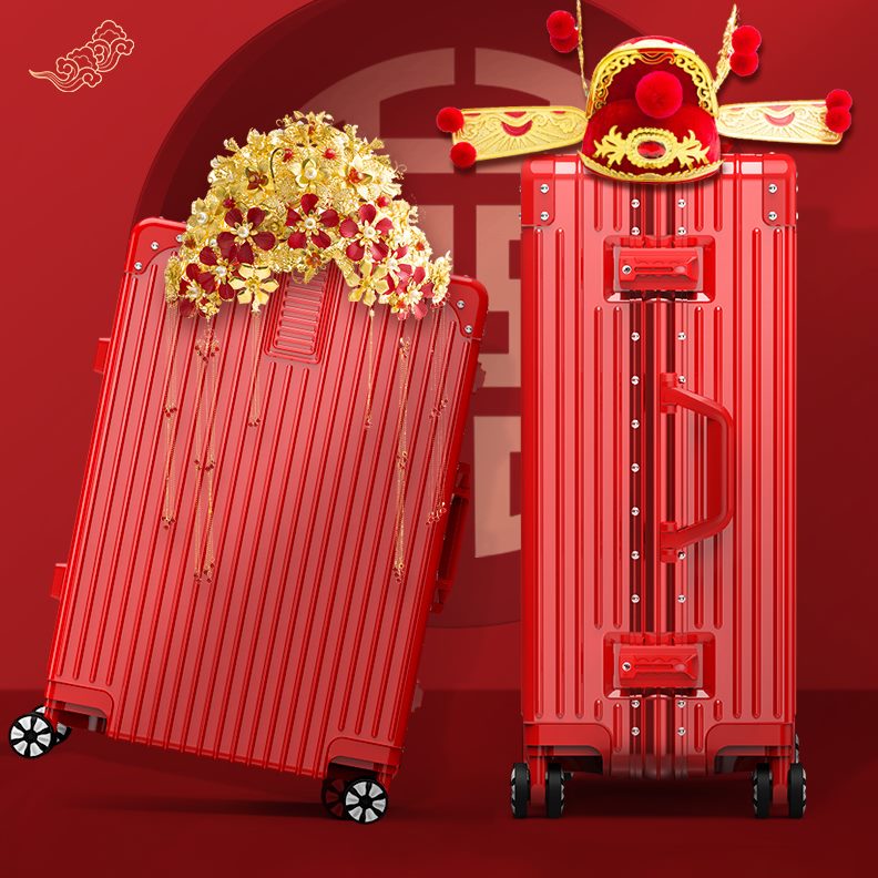 婚礼密码妆行李箱女陪嫁箱结婚箱寸20新娘皮箱红色拉杆箱旅行子嫁