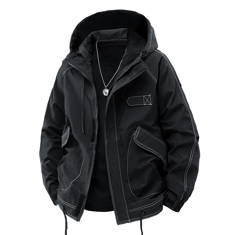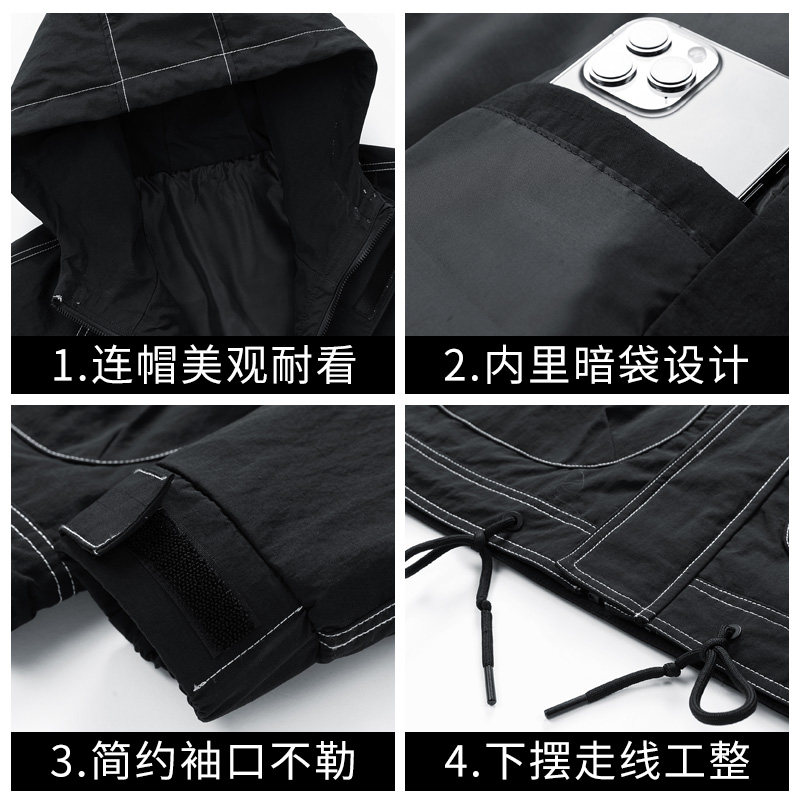 罗蒙冲锋衣男士春秋季户外运动防风防水连帽外套工装登山服夹克男