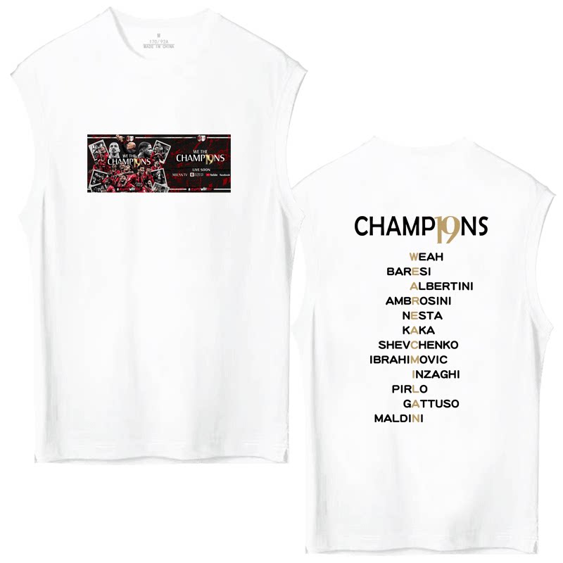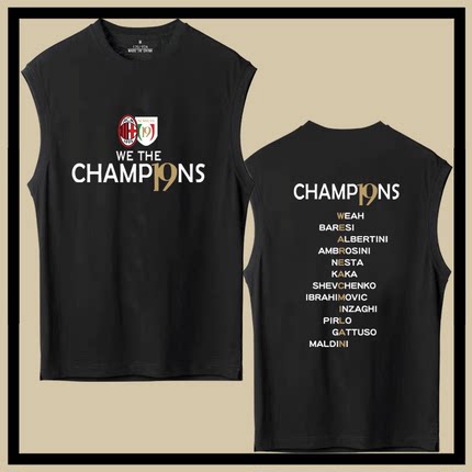 AC米兰队意甲夺冠19冠纪念2022伊布足球迷男定制纯棉无袖T恤背心
