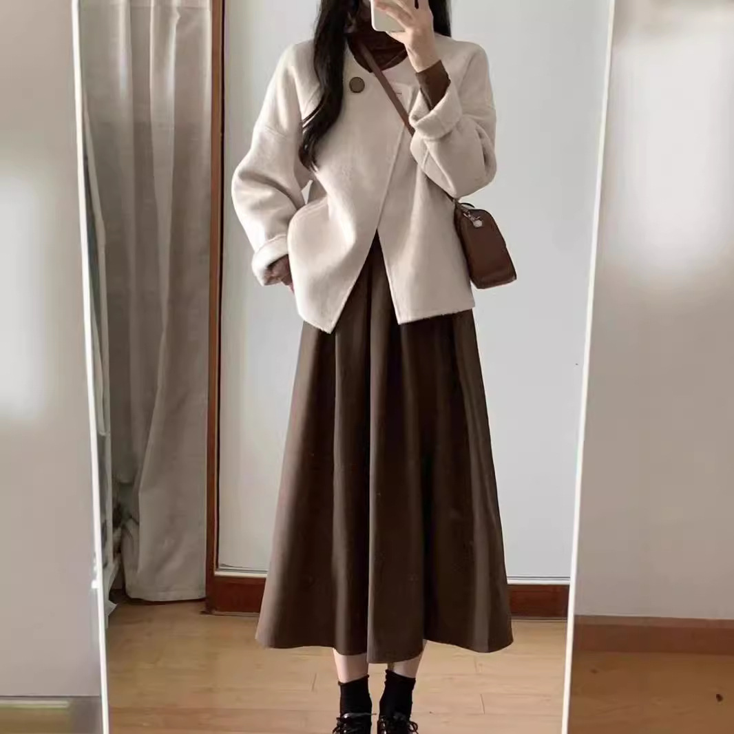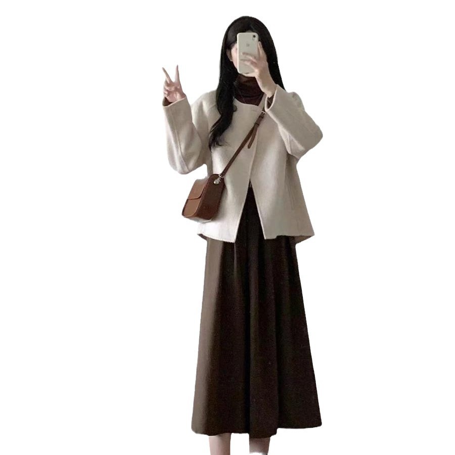 深秋冬小香风针织外套女感穿搭配一整套微胖显瘦连衣裙子套装