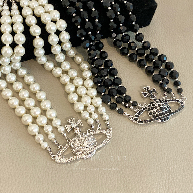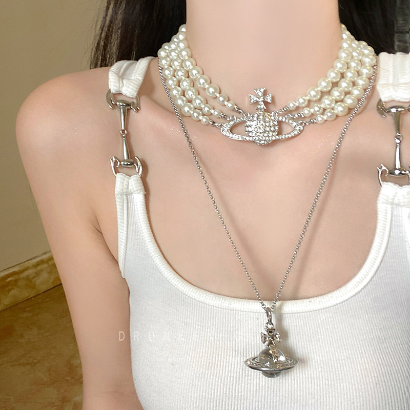 西太后珍珠土星项链女多层叠戴重工闪钻颈链配饰轻奢高级感锁骨链