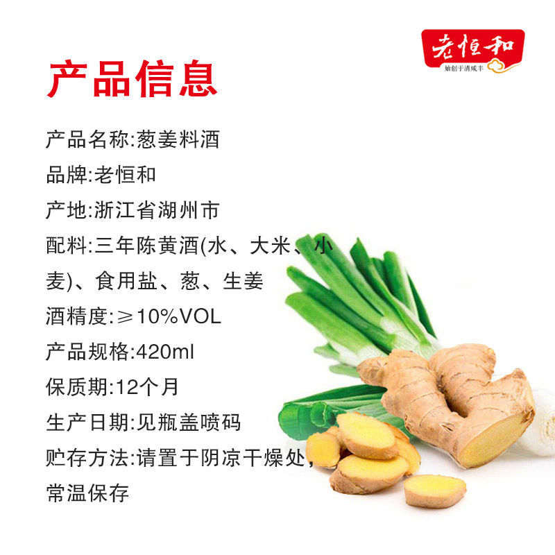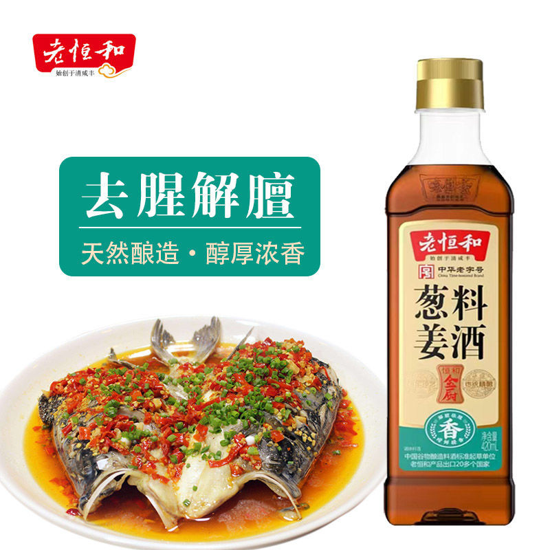 老恒和葱姜料酒420ml塑料瓶装去腥厨房烹饪料酒家用黄酒生姜老姜