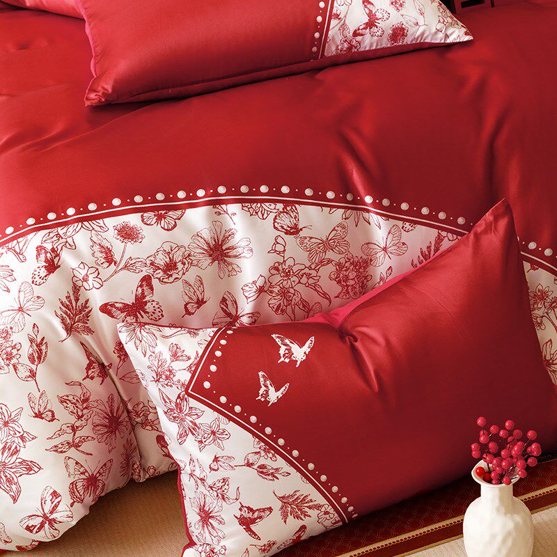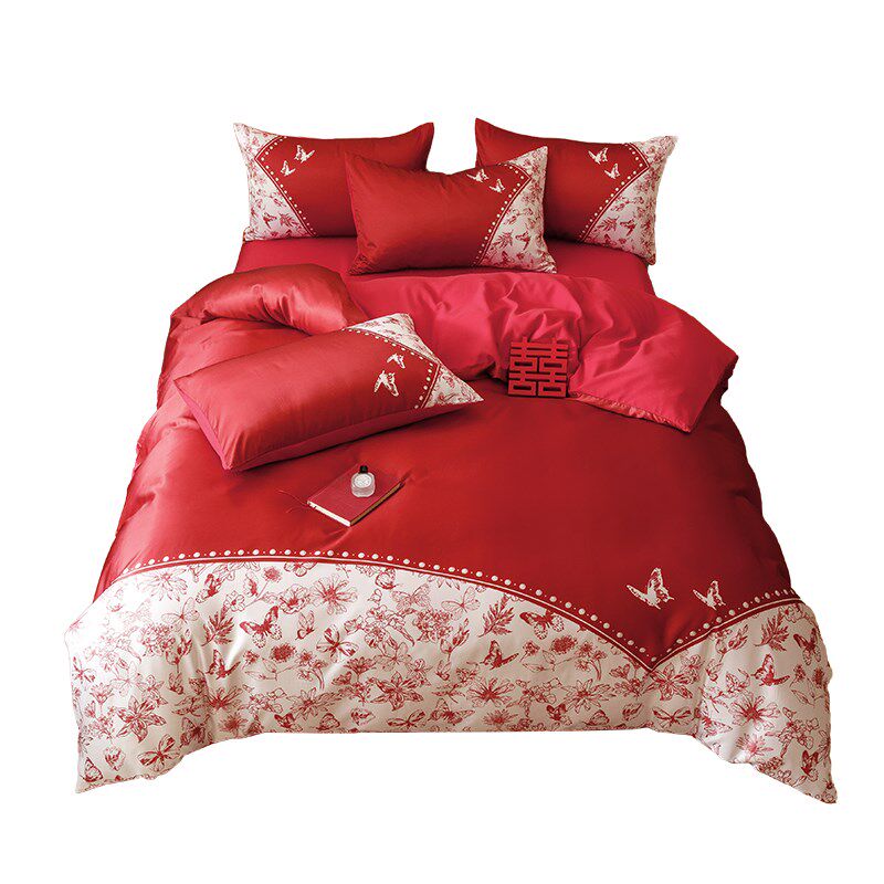 高档新中式婚庆i四件套全棉印花新婚陪嫁纯棉被套床单结婚床上用
