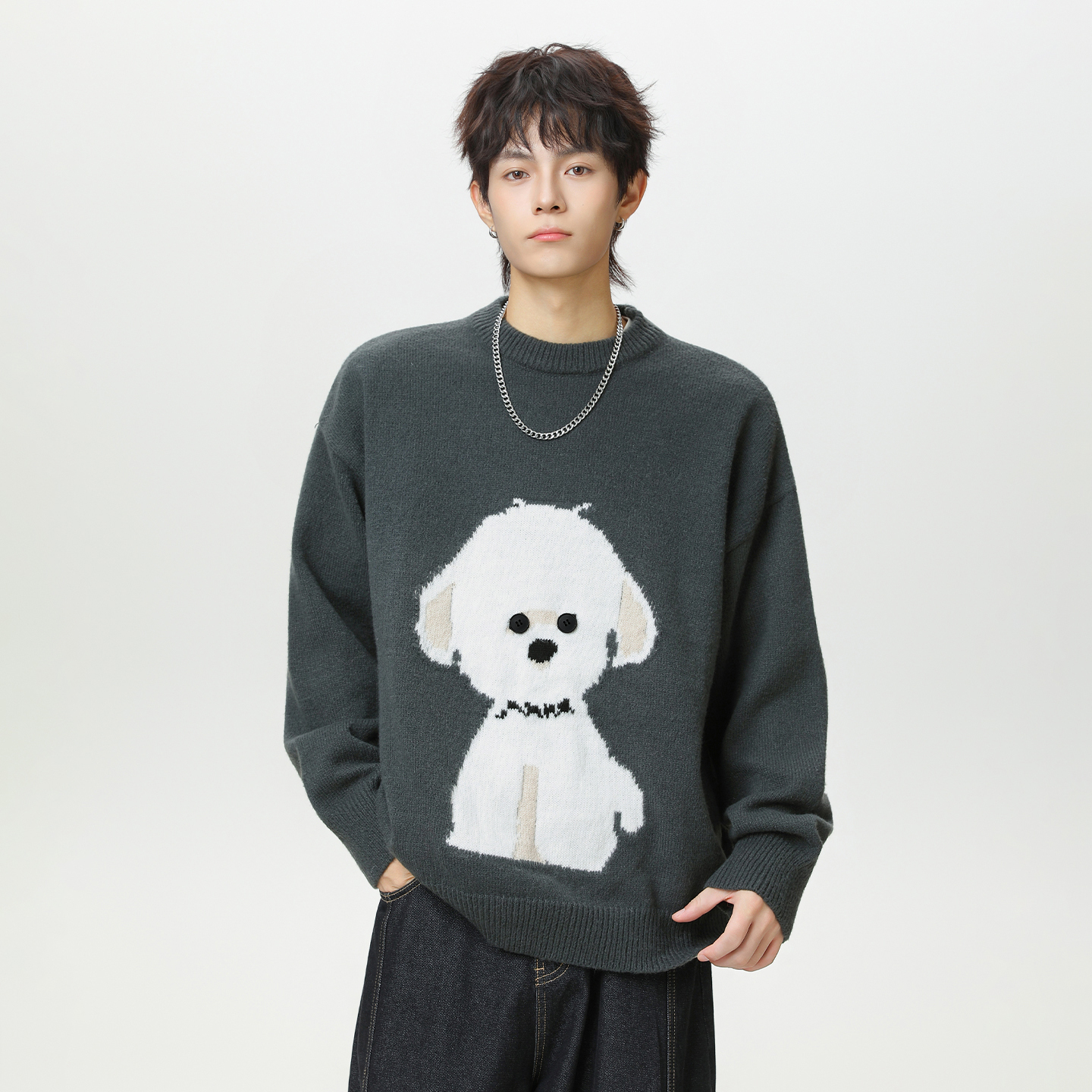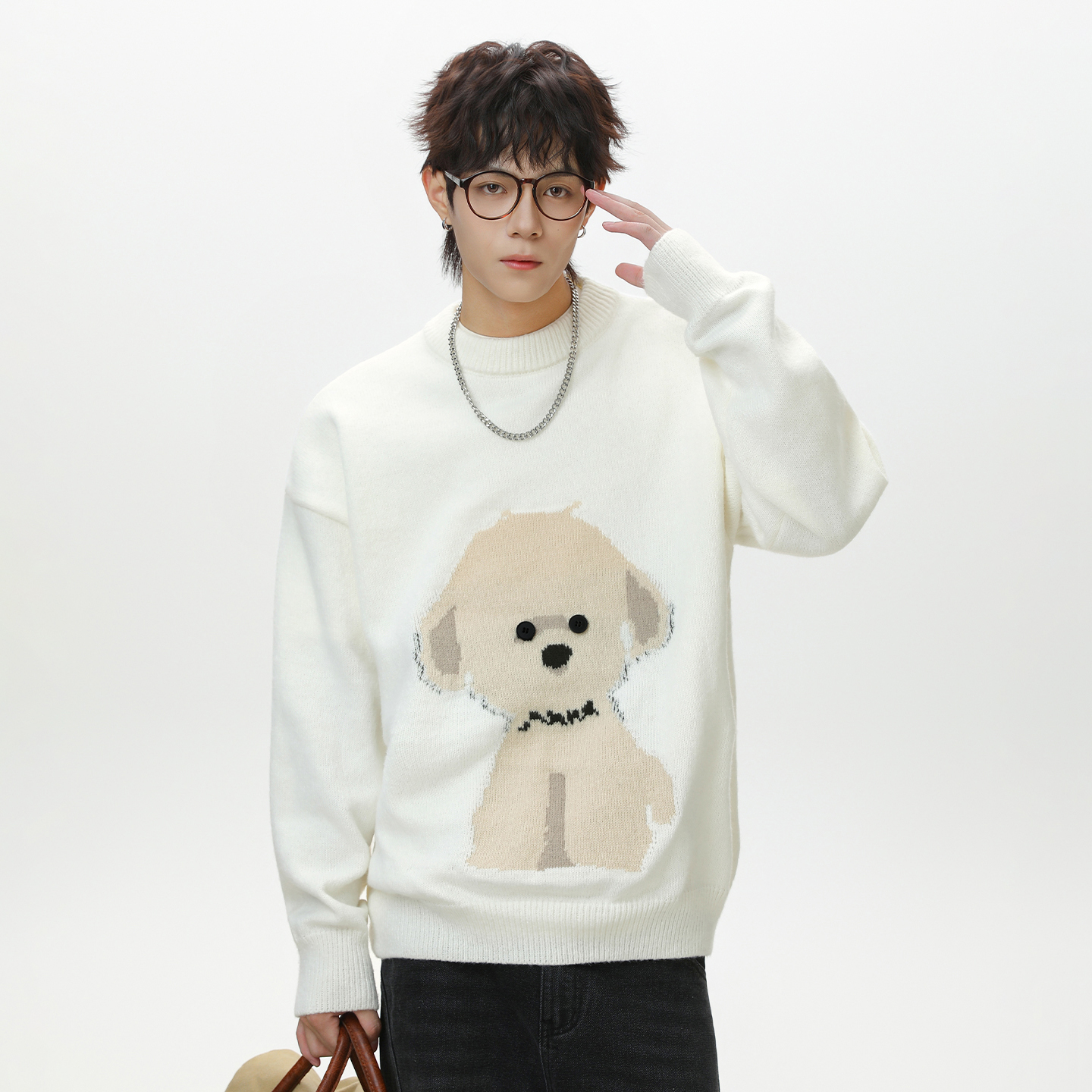 WASSUP毛绒小狗圆领针织衫男女同款秋冬小众潮流套头百搭宽松毛衣