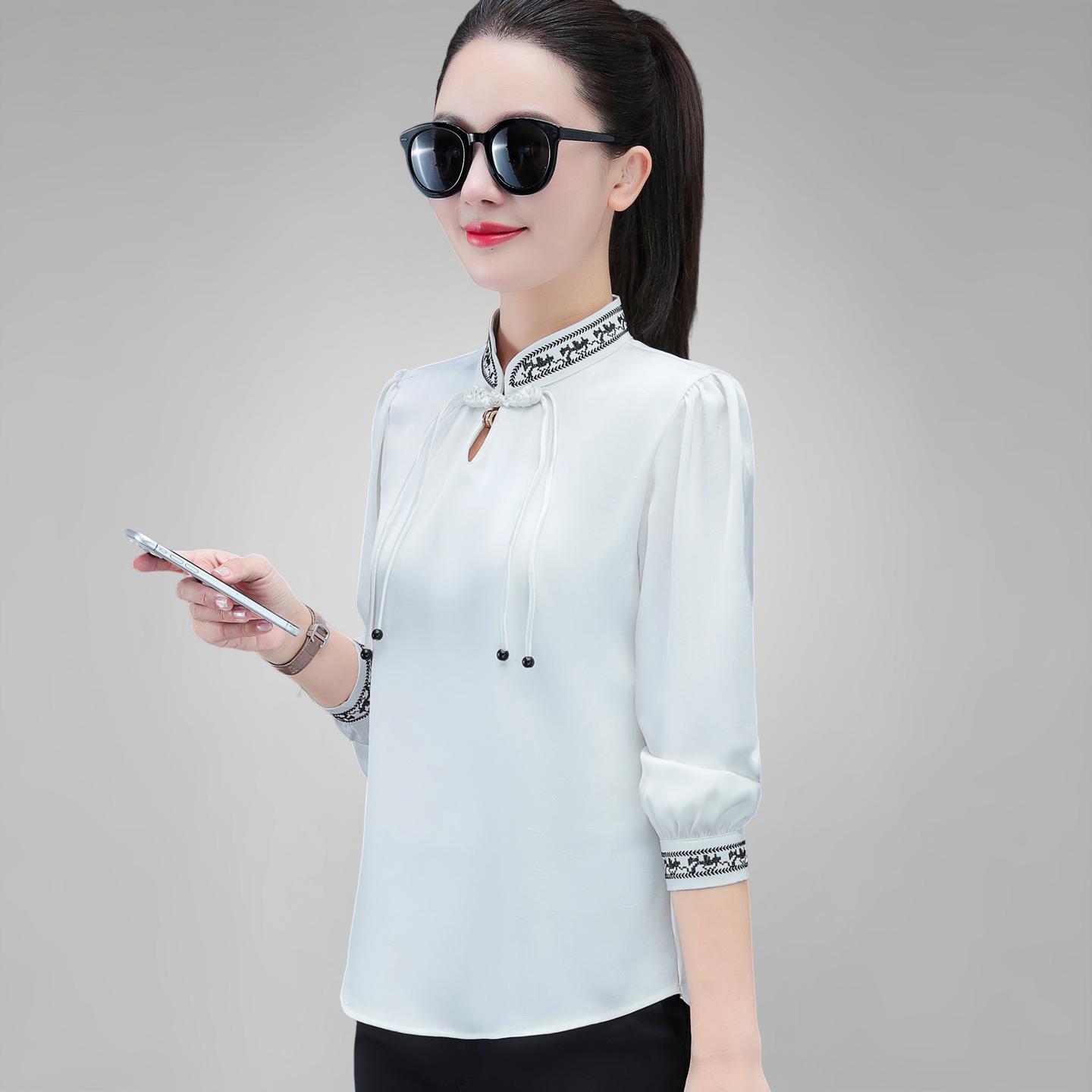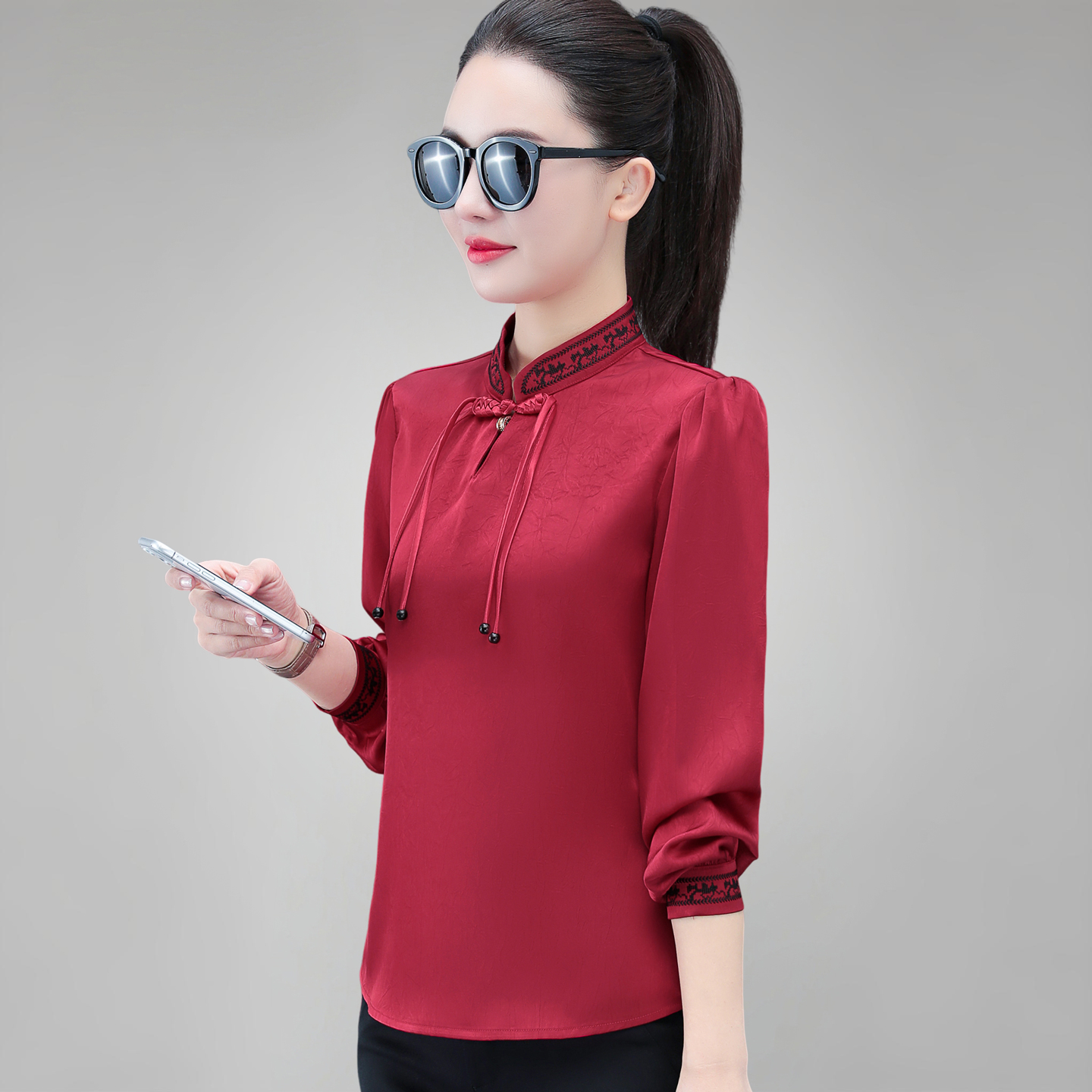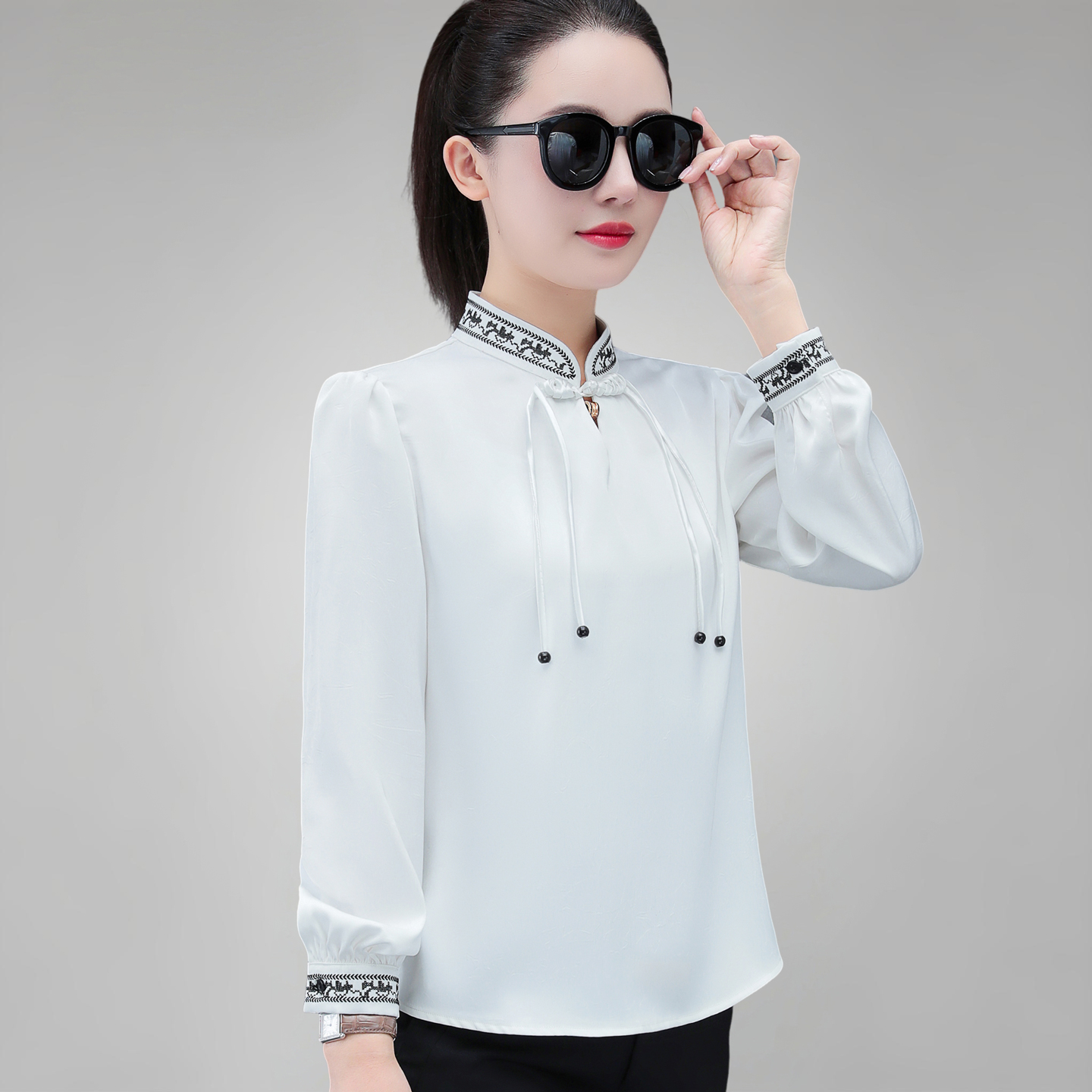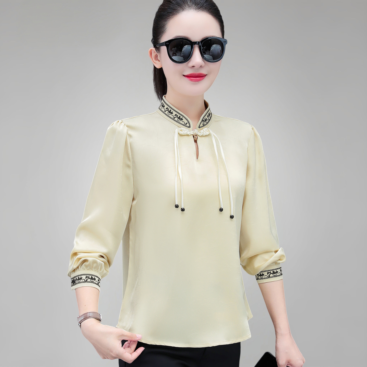 雪纺衬衣女长袖2025秋季新款妈妈打底上衣洋气中式高级感立领衬衫