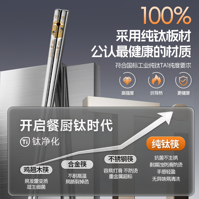 纯钛筷子食品级家庭专用一人一筷2026新款家用高档抗菌防霉钛筷子