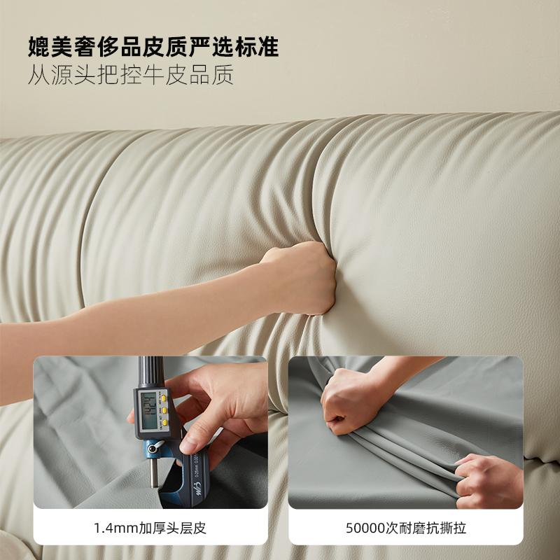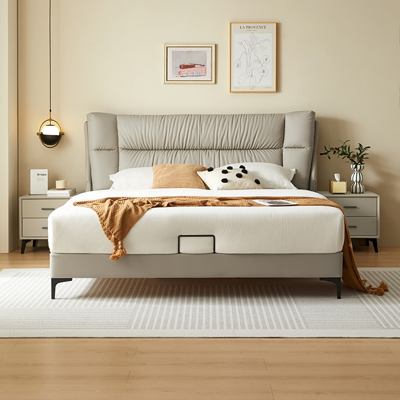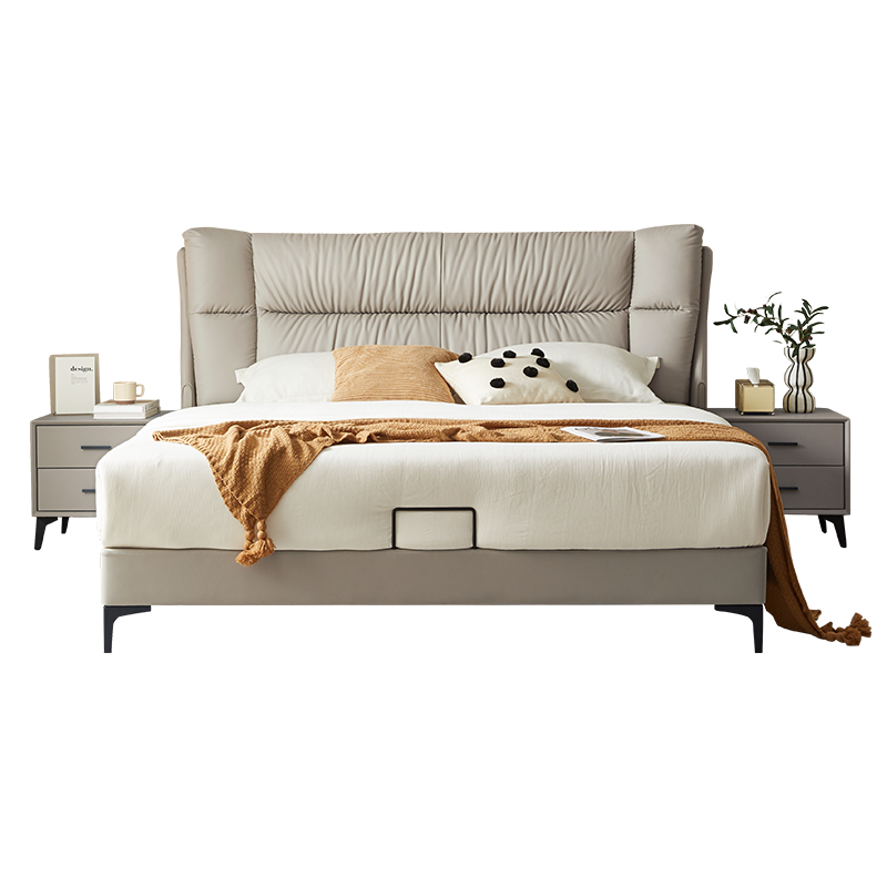 双虎轻奢真皮床简约现代主卧大床高端大气实木双人头层牛皮23653Z