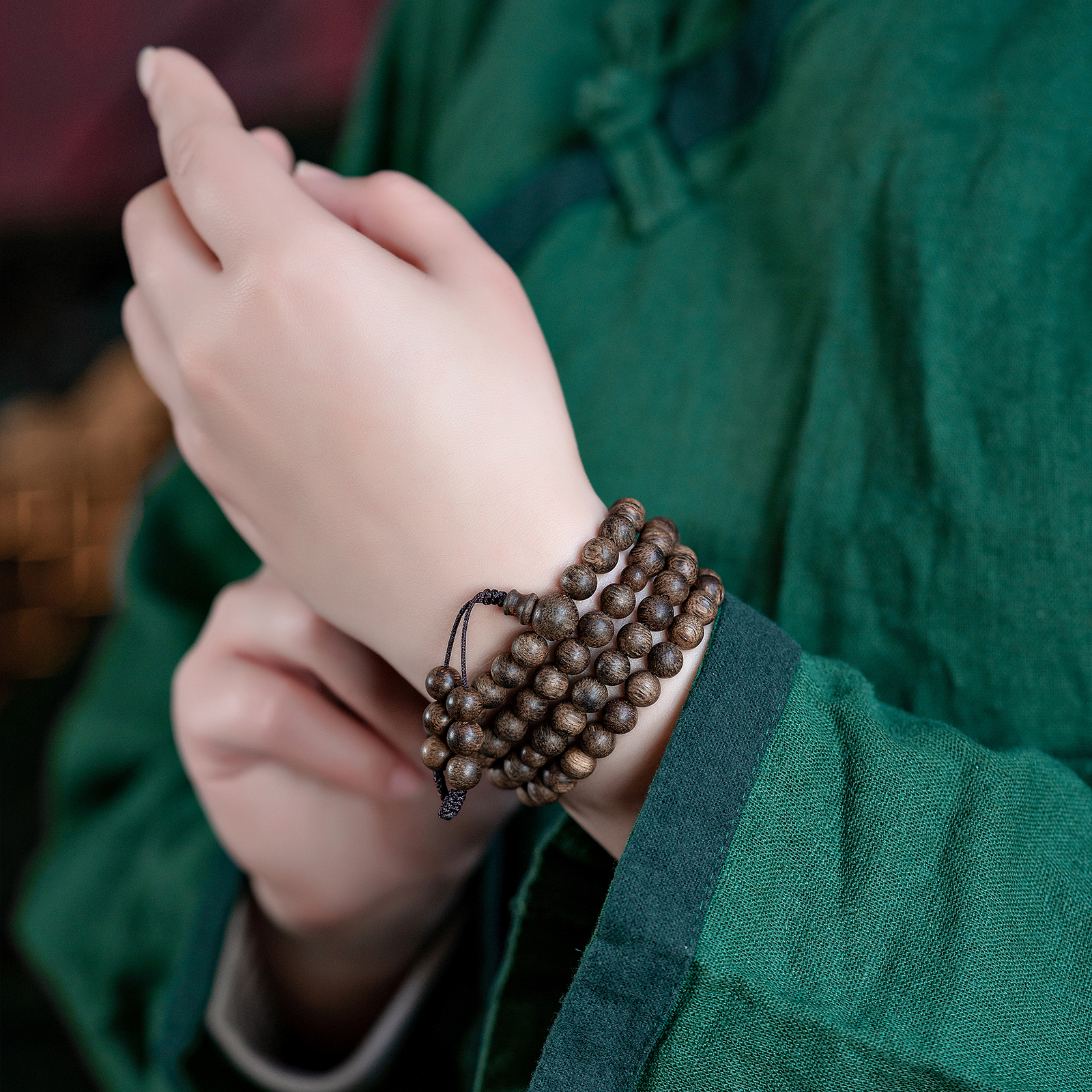 天然印尼达拉干沉香手串108颗佛珠保真沉水级老料木质文玩手链6mm