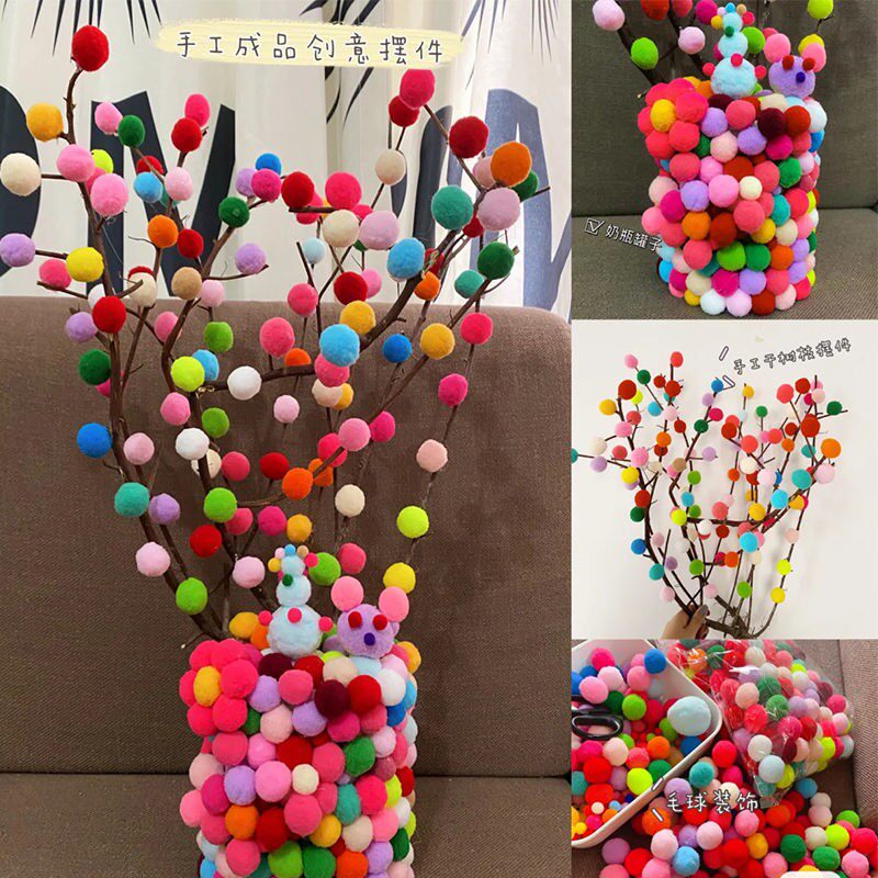 混装高弹毛球彩色小绒球幼儿园儿童diy手工创意装饰品材料辅料
