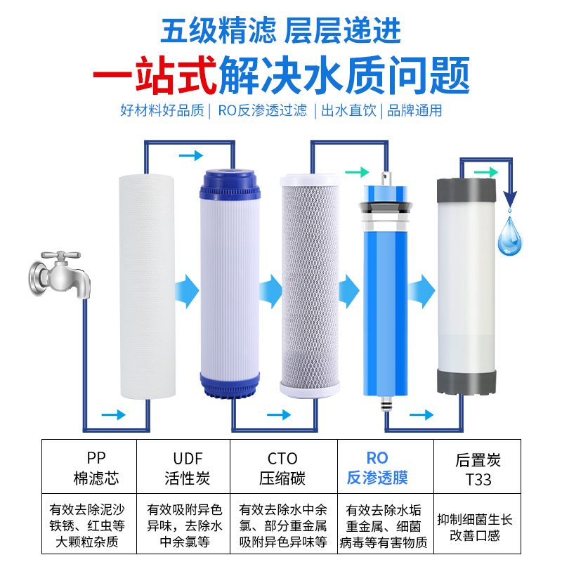 家用净水器滤芯ro反渗透75G100G苹果6代净水机滤芯10寸滤芯PP通用