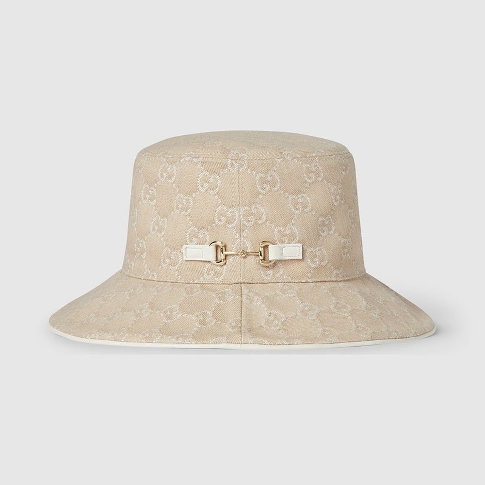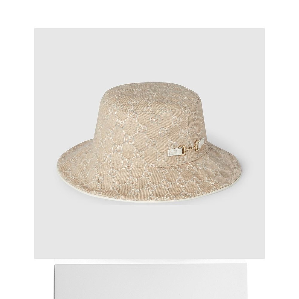自营欧洲直邮Gucci/古驰 女士浅灰色/白色牛仔布双G马衔扣渔夫帽