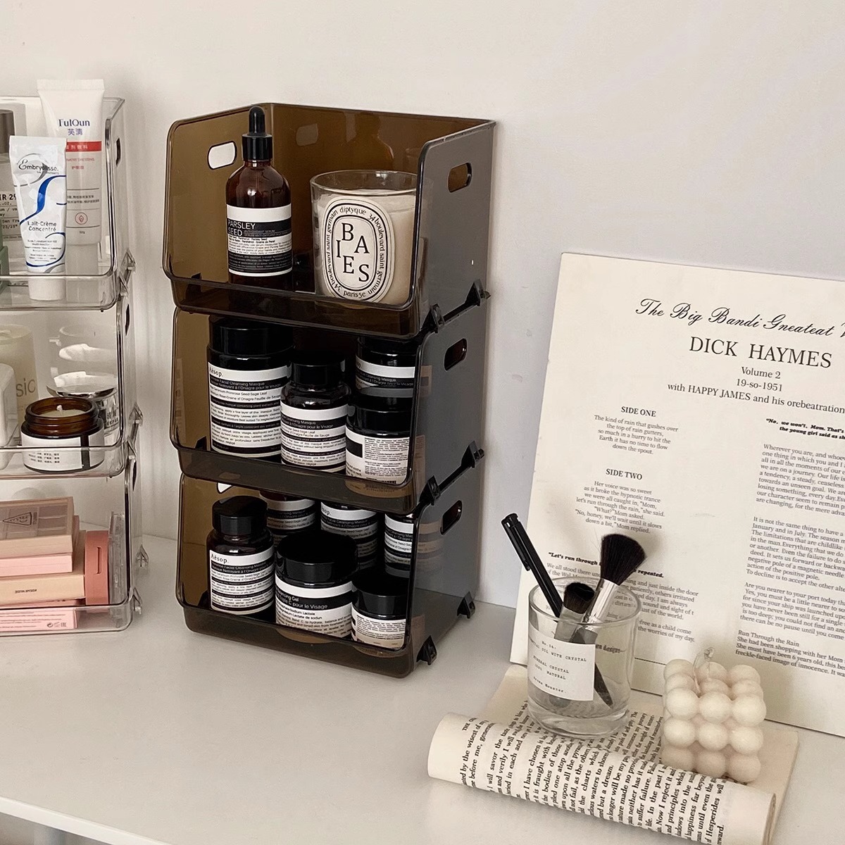 ins风桌面化妆品面膜收纳盒透明亚克力茶杯架学生宿舍水杯置物架