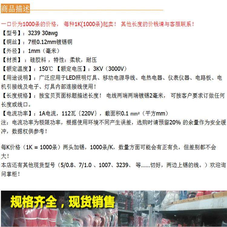 323930#外径1mm硅胶高温细线束导电焊接电子线材电源信号镀锡导线