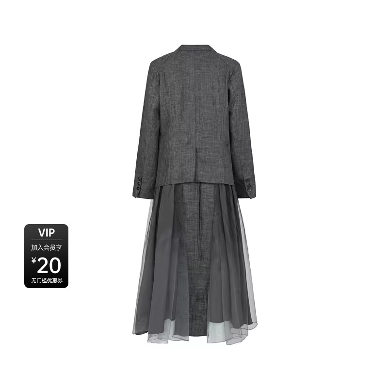 sdeer圣迪奥秋季女装亚麻网纱西装外套吊带裙套装S233Z1408