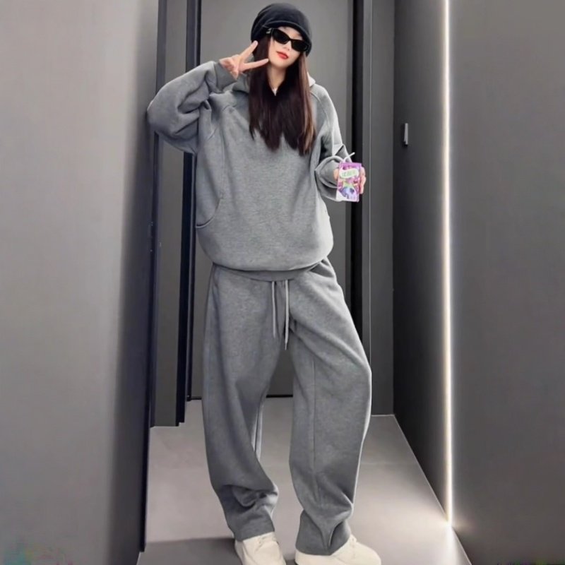 加绒加厚时尚套装男士潮牌休闲运动服一整套情侣款连帽卫衣两件套