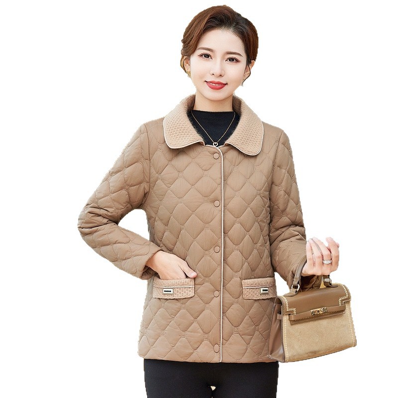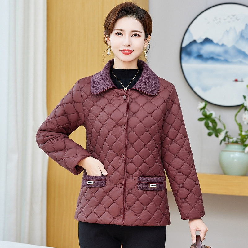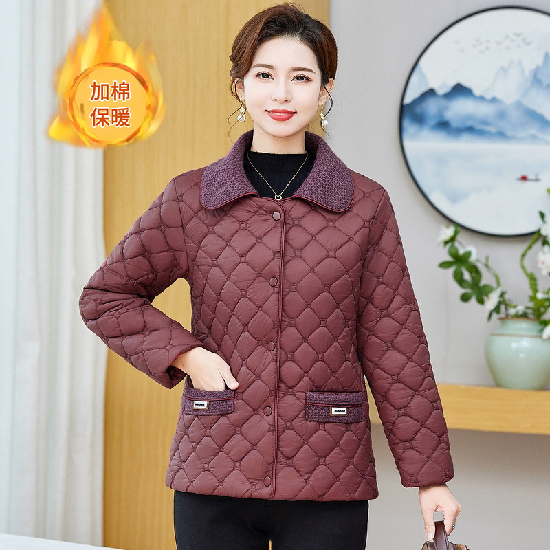 中年妈妈秋冬轻薄款翻领小棉衣短款中老年女装冬装洋气保暖棉袄