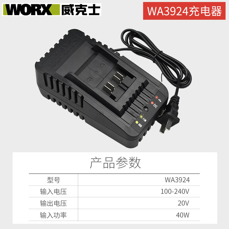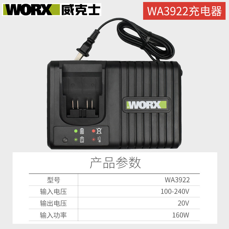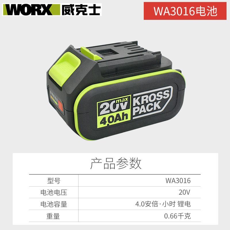 worx威克士原装20V锂电电池通用4.0大脚板WA3016电动工具充电器