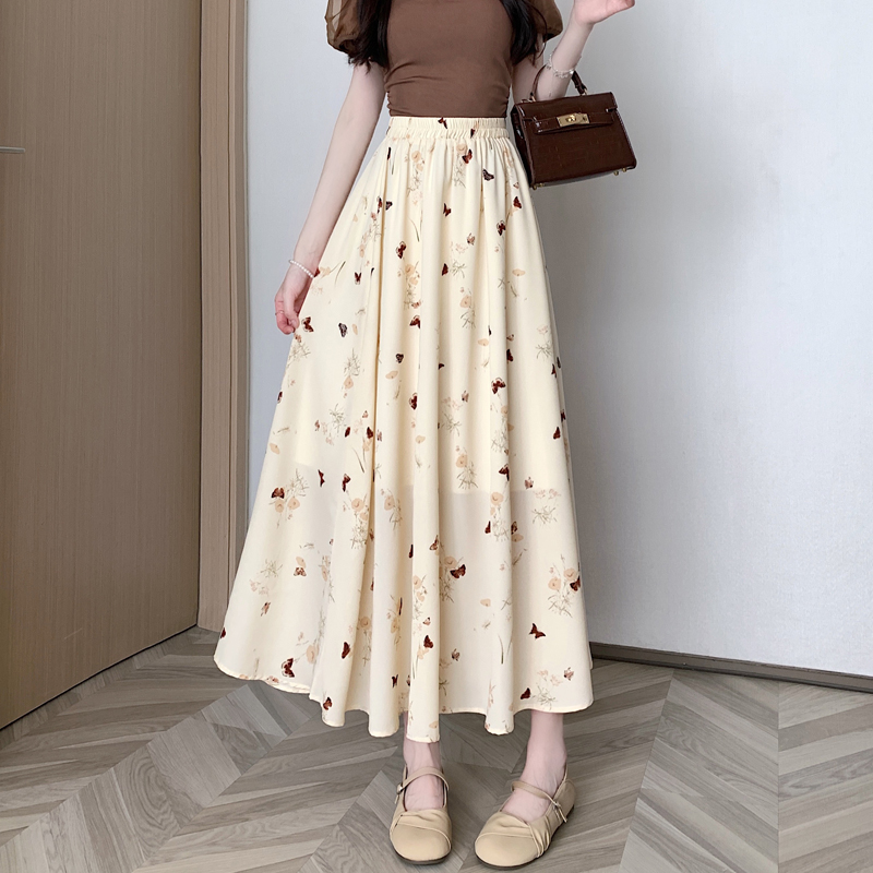 雪纺半身裙女2025新款夏季气质宽松大摆垂感长裙子高腰a字碎花裙