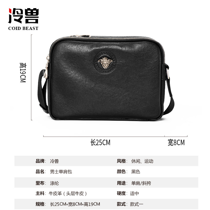 冷兽真皮男包单肩包休闲男款牛皮大容量男士公文包包斜挎背包潮牌