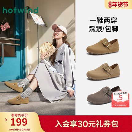 热风勃肯鞋女2026年春季新款百搭舒适外穿拖鞋复古休闲两穿女鞋子