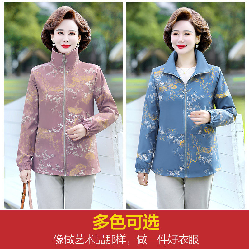 妈妈装休闲碎花夹克外套洋气秋装中老年女装短款风衣西装中年女士